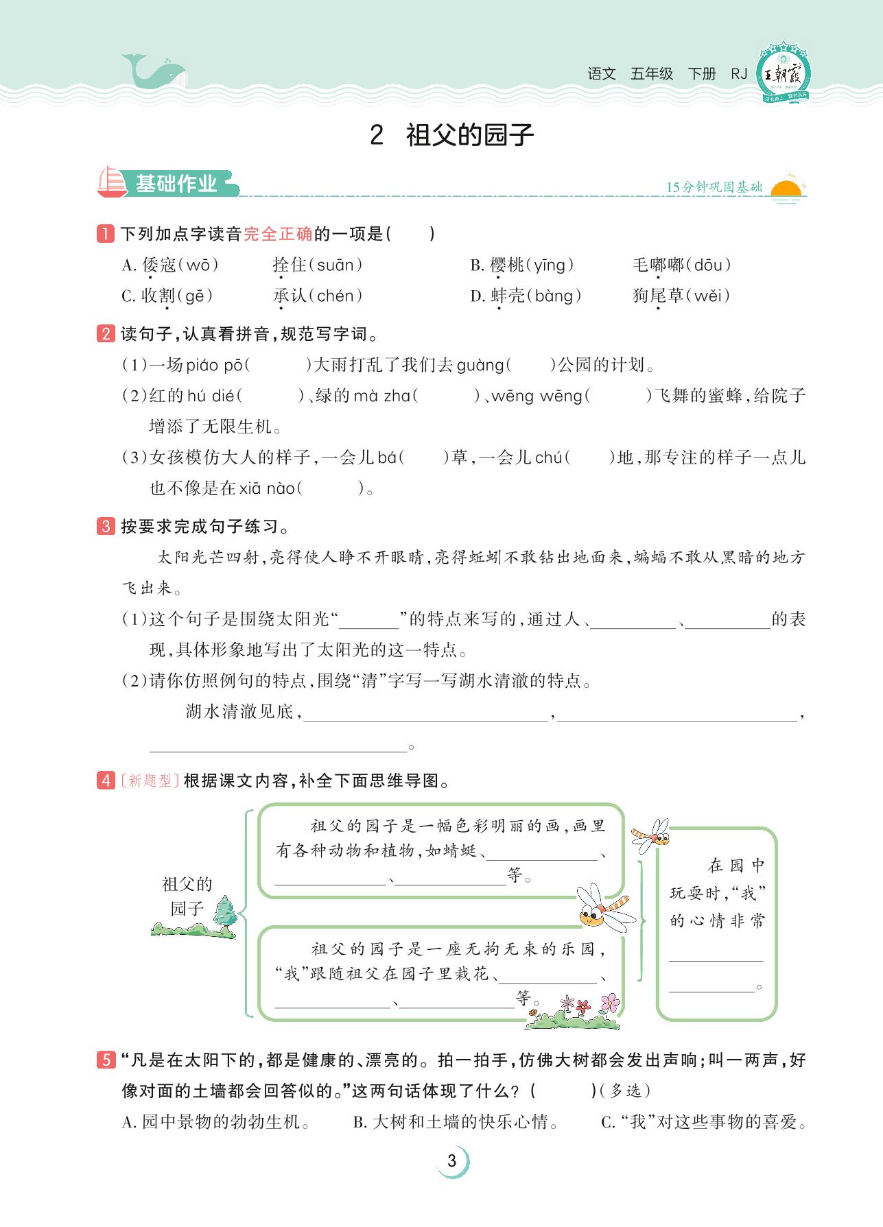 2023下册五年级语文人教版 第一单元 童年往事——2 祖父的园子