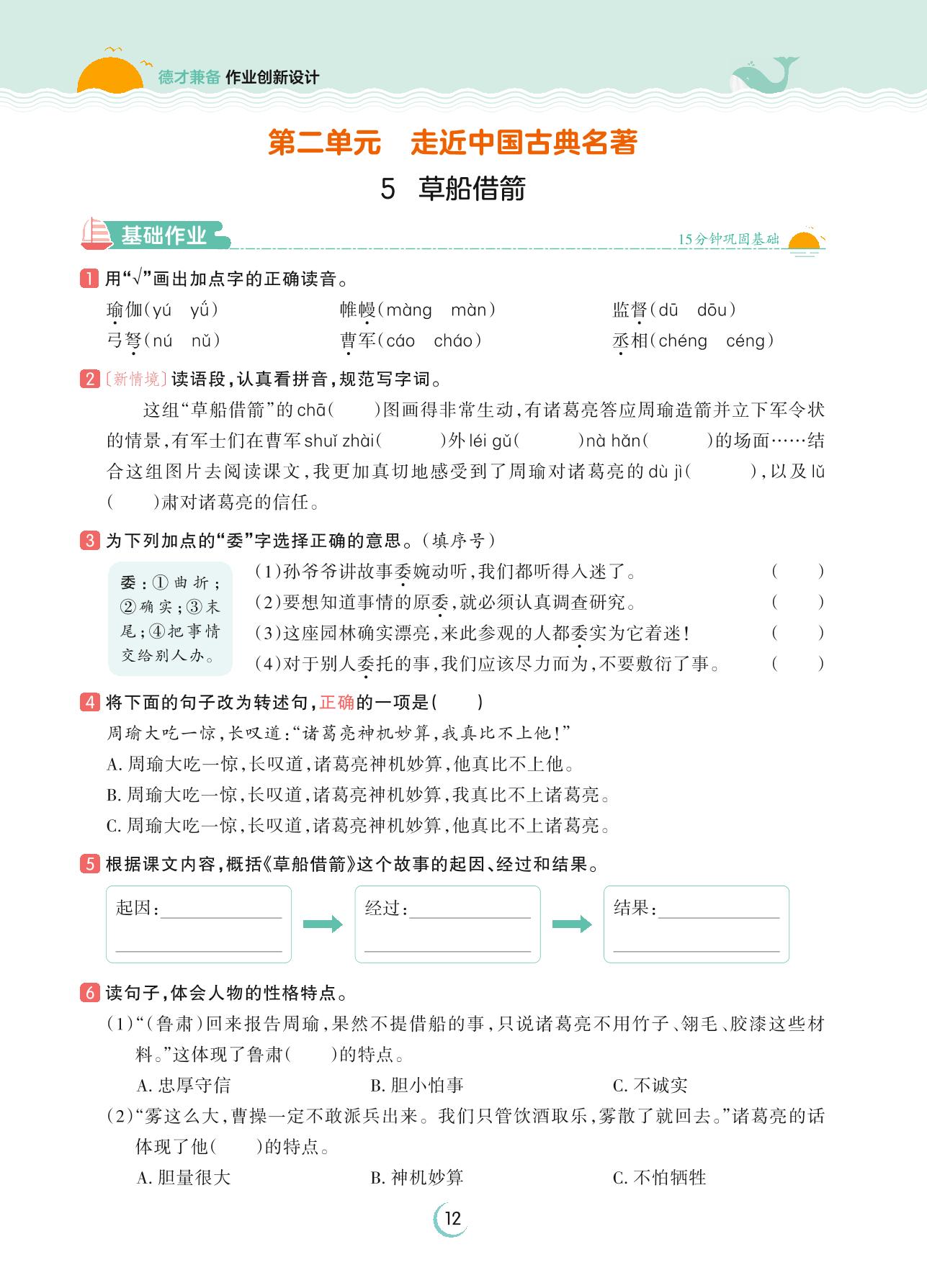 2023下册五年级语文人教版 第二单元 走近中国古典名著——5 草船借箭