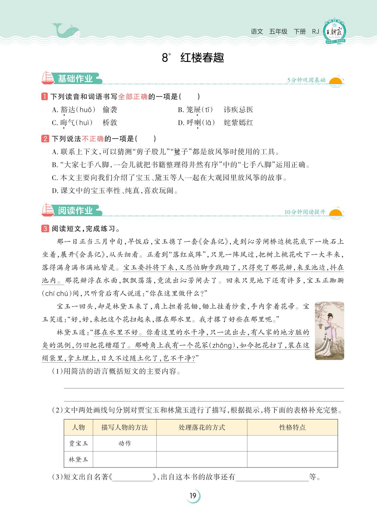 2023下册五年级语文人教版 第二单元 走近中国古典名著——8 红楼春趣