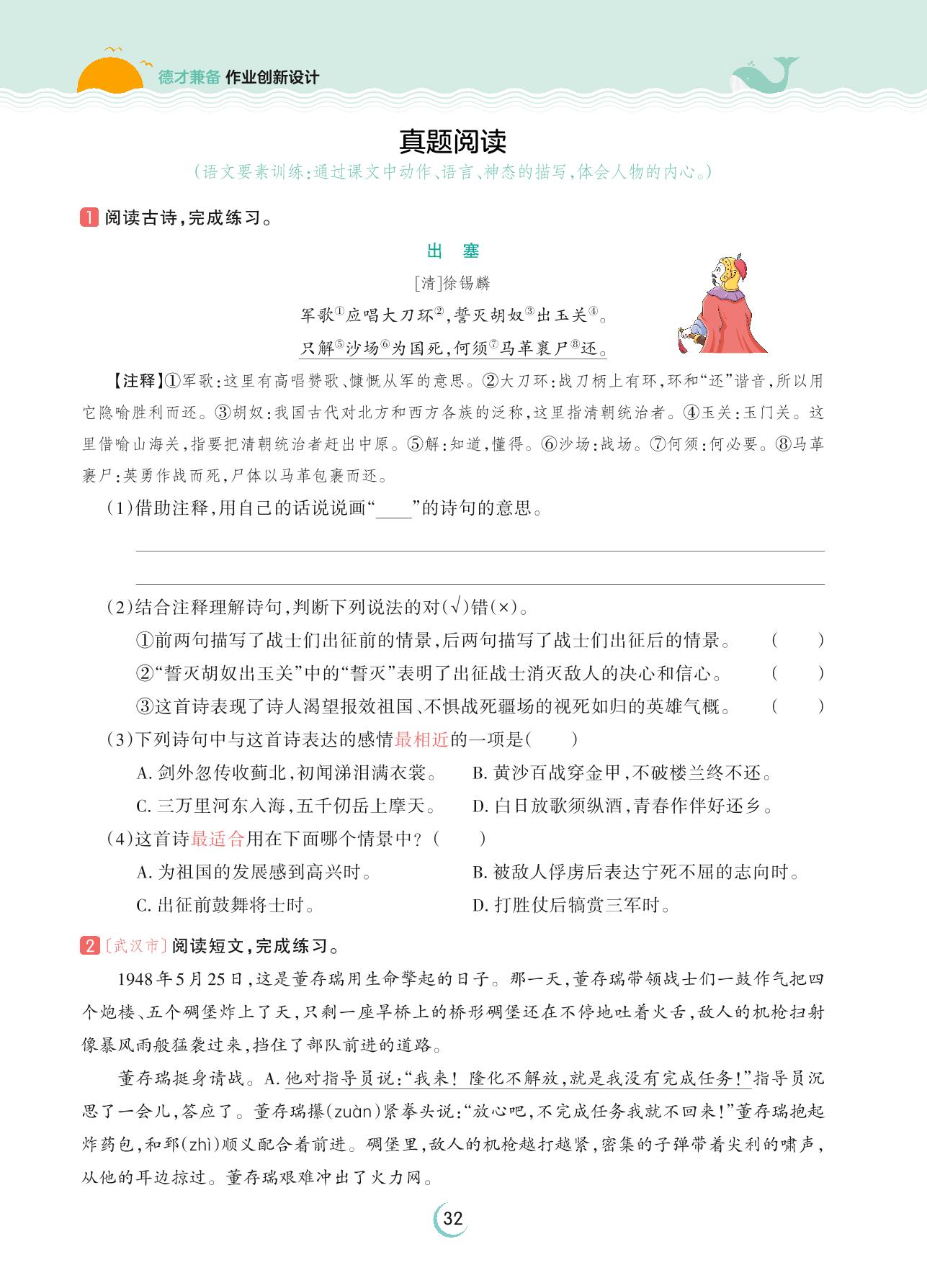 2023下册五年级语文人教版 第四单元 责任——真题阅读(语文要素训练)
