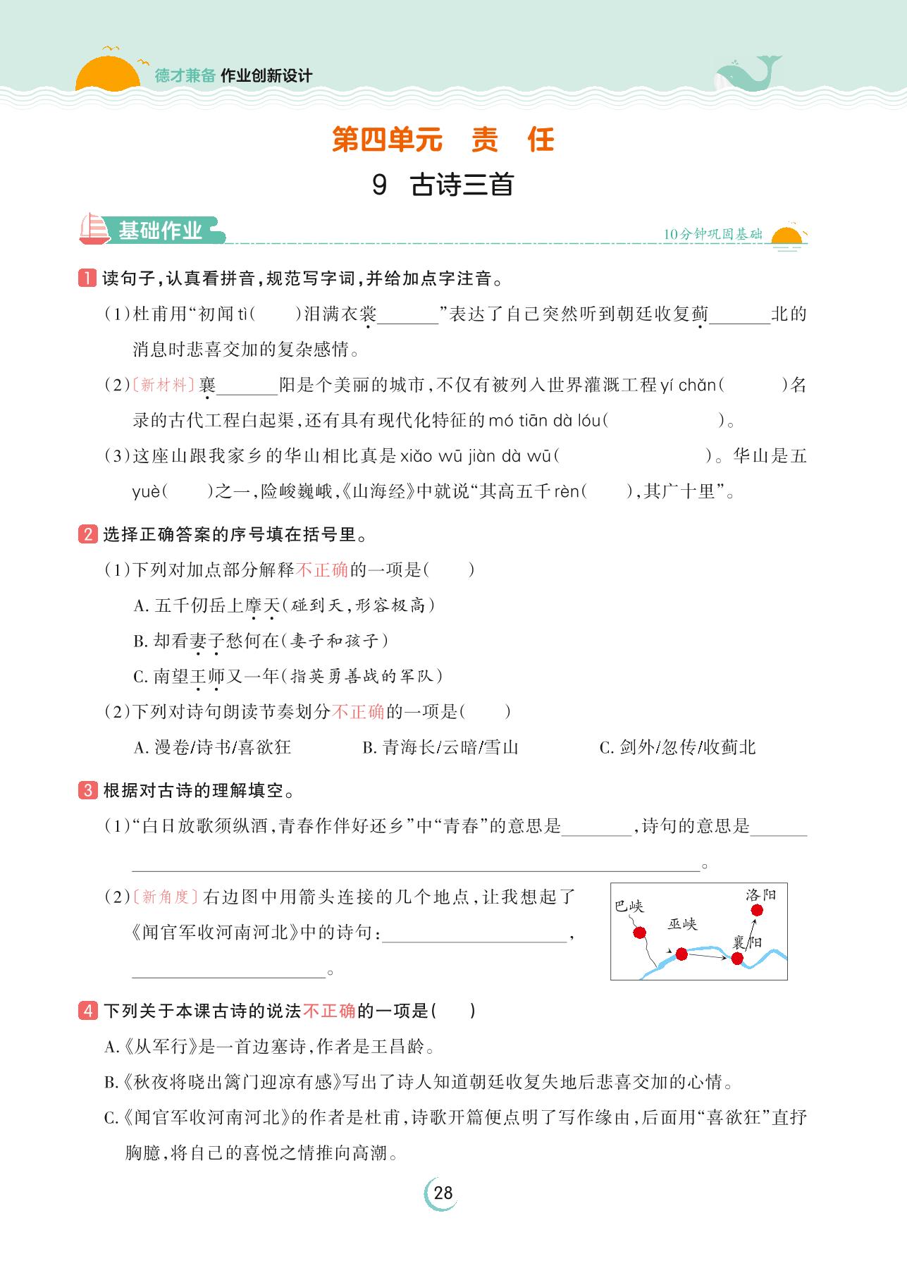 2023下册五年级语文人教版 第四单元 责任——9 古诗三首