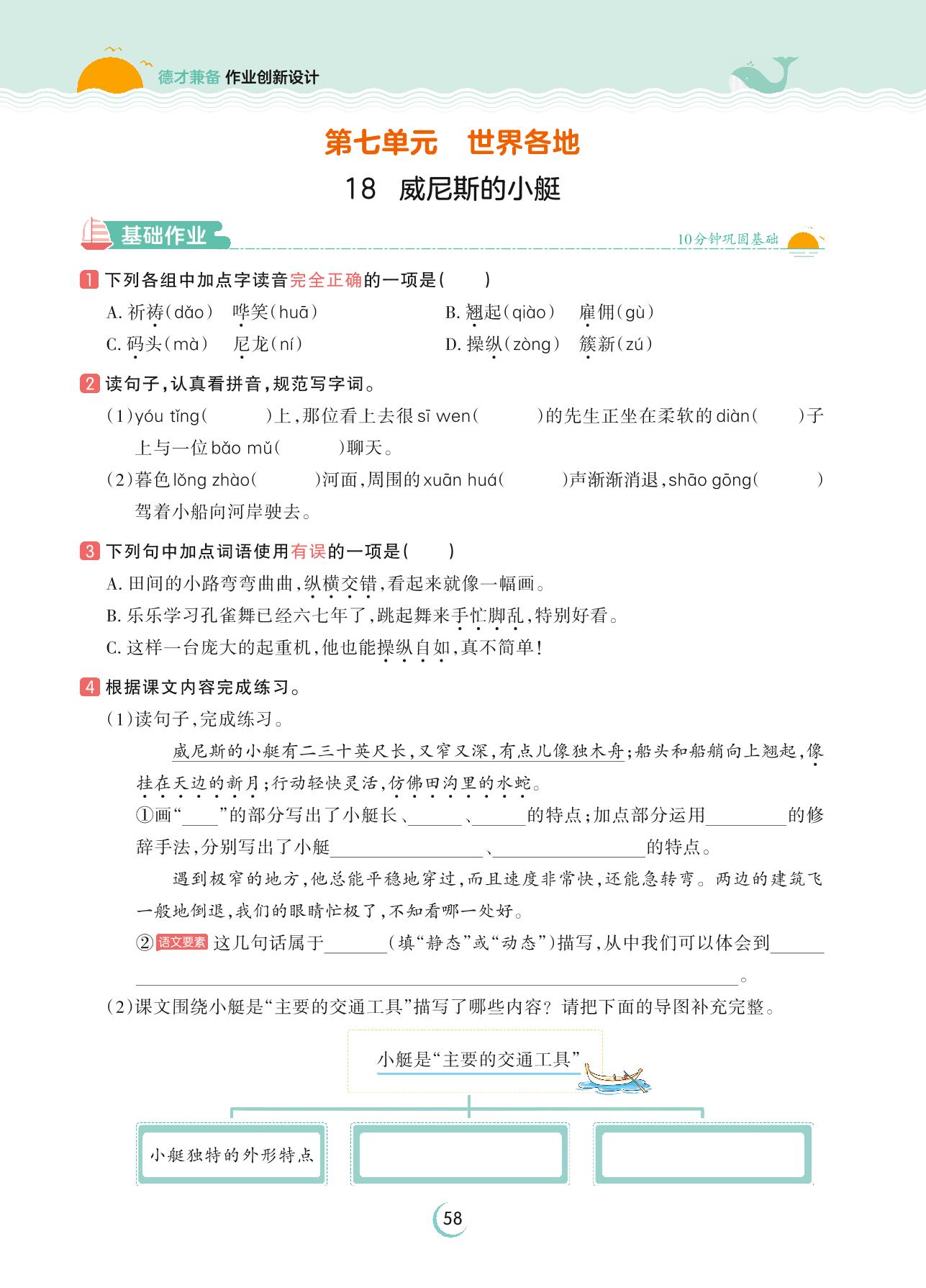 2023下册五年级语文人教版 第七单元 世界各地——18 威尼斯的小艇