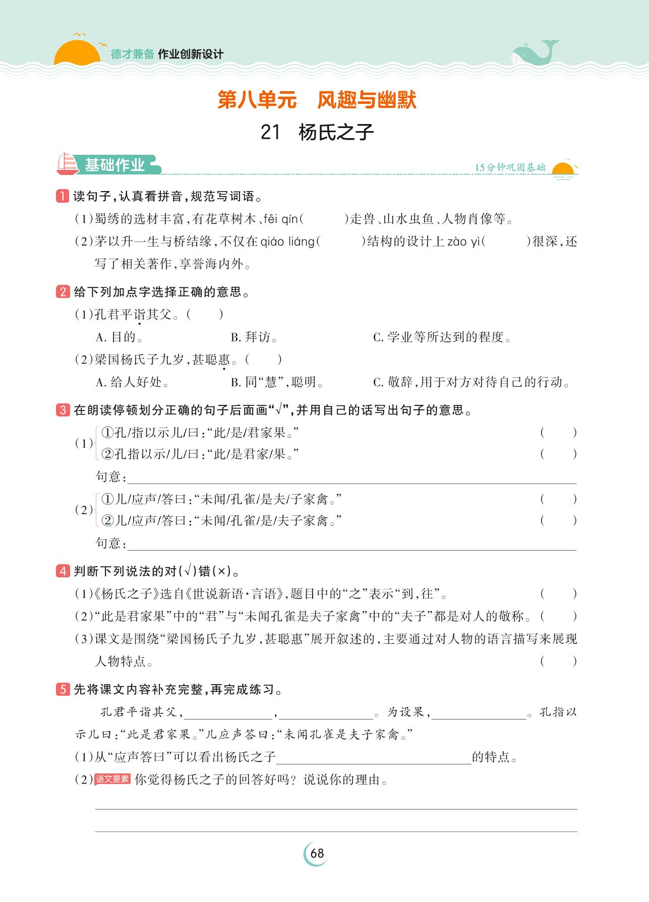 2023下册五年级语文人教版 第八单元 风趣与幽默——21 杨氏之子
