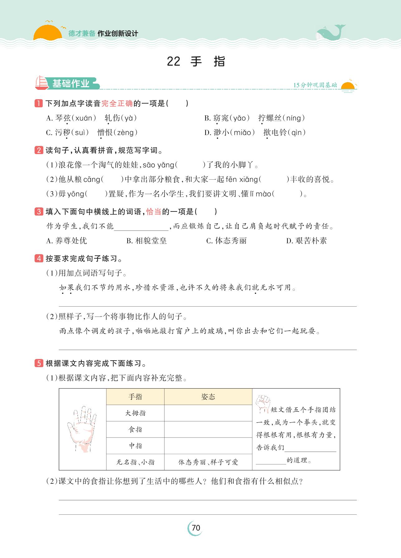 2023下册五年级语文人教版 第八单元 风趣与幽默——22 手指