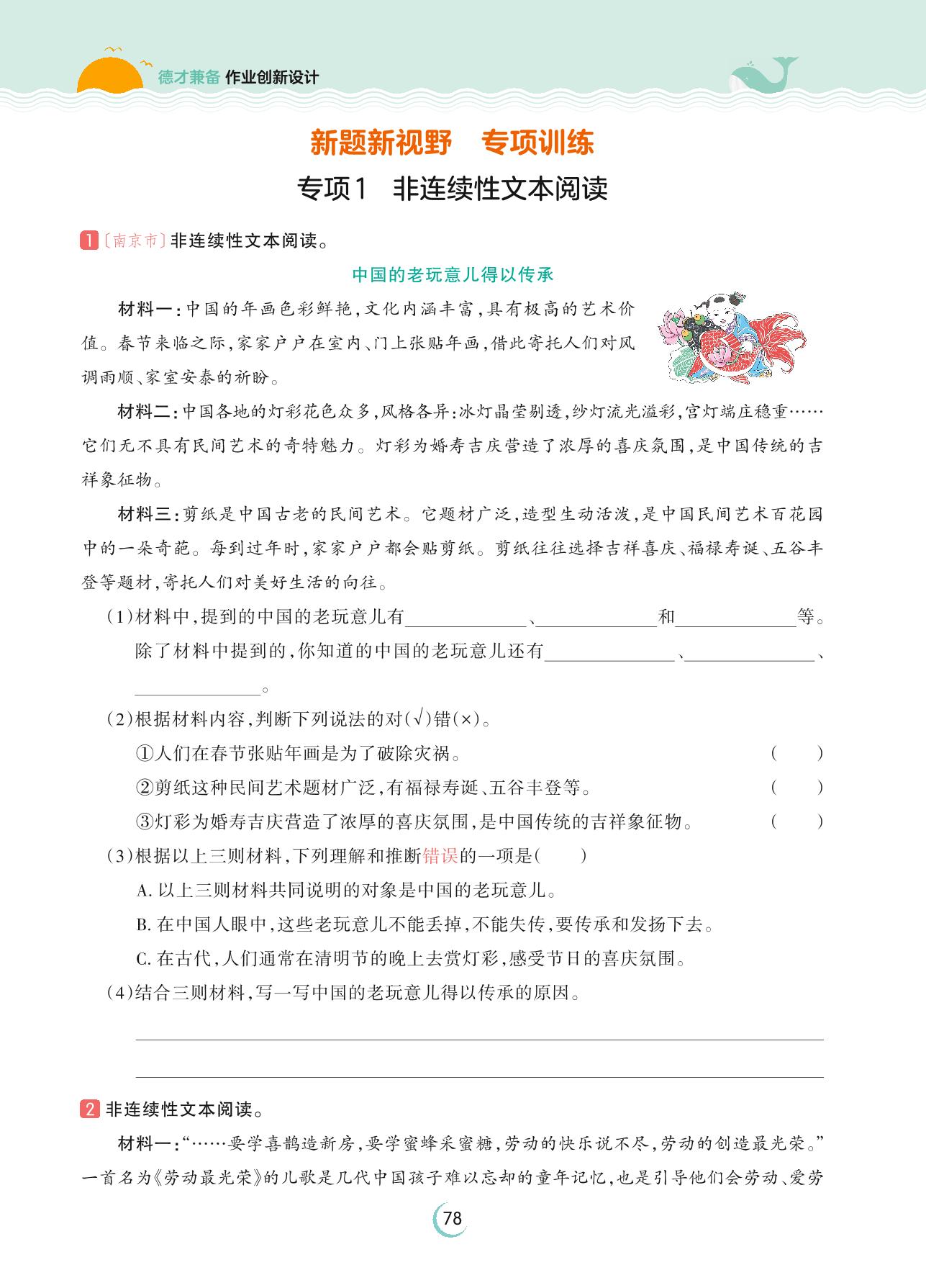 2023下册五年级语文人教版 新题新视野 专项训练——专项1 非连续性文本阅读