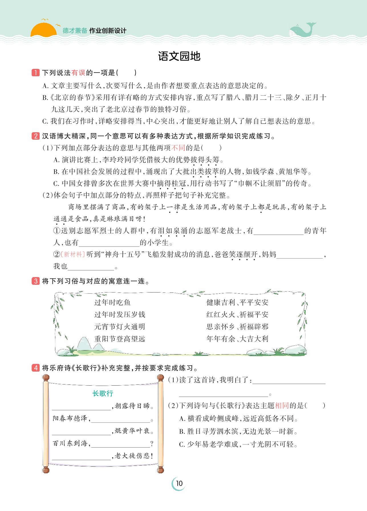 2023下册六年级语文人教版 第一单元 民风民俗——语文园地