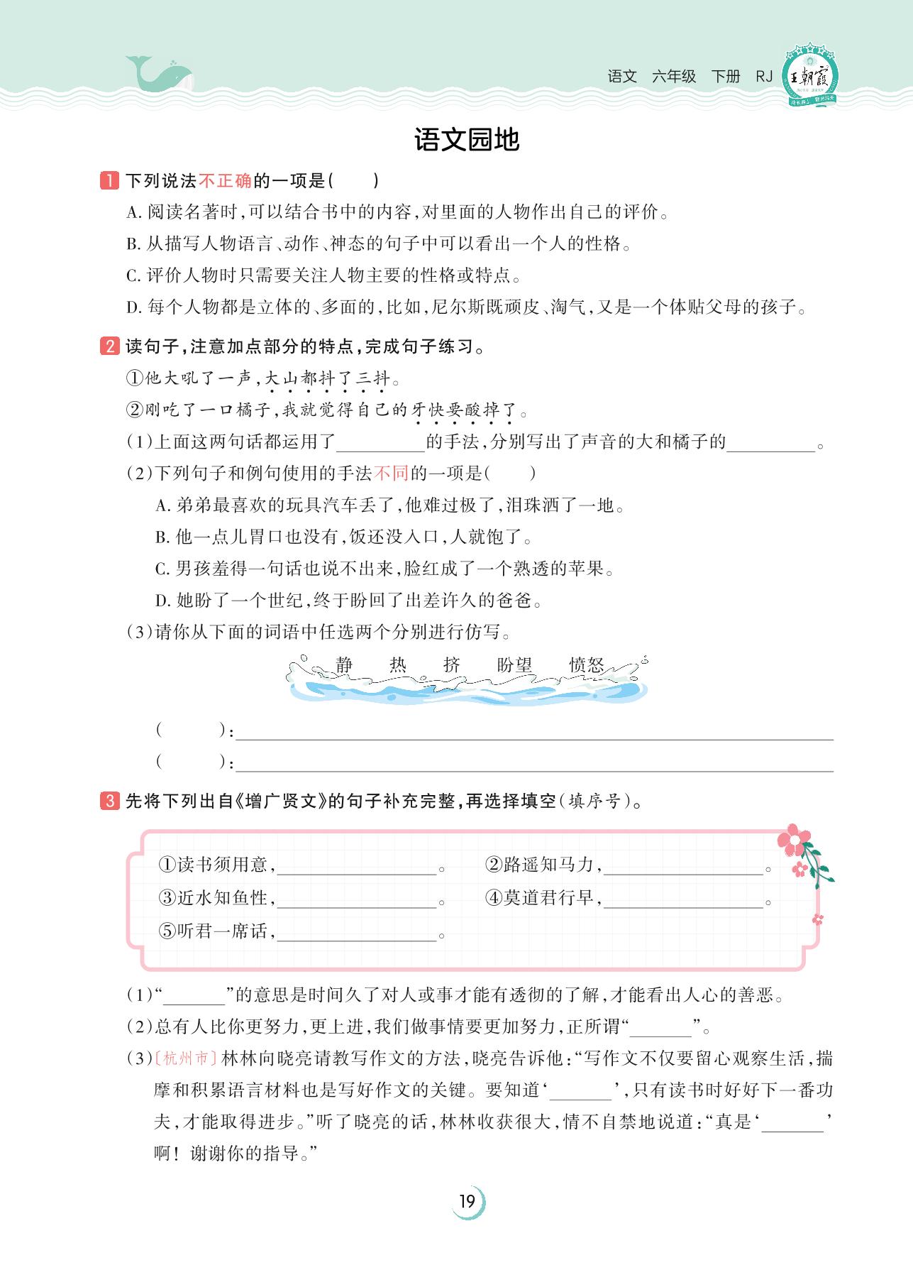 2023下册六年级语文人教版 第二单元 外国文学名著——语文园地