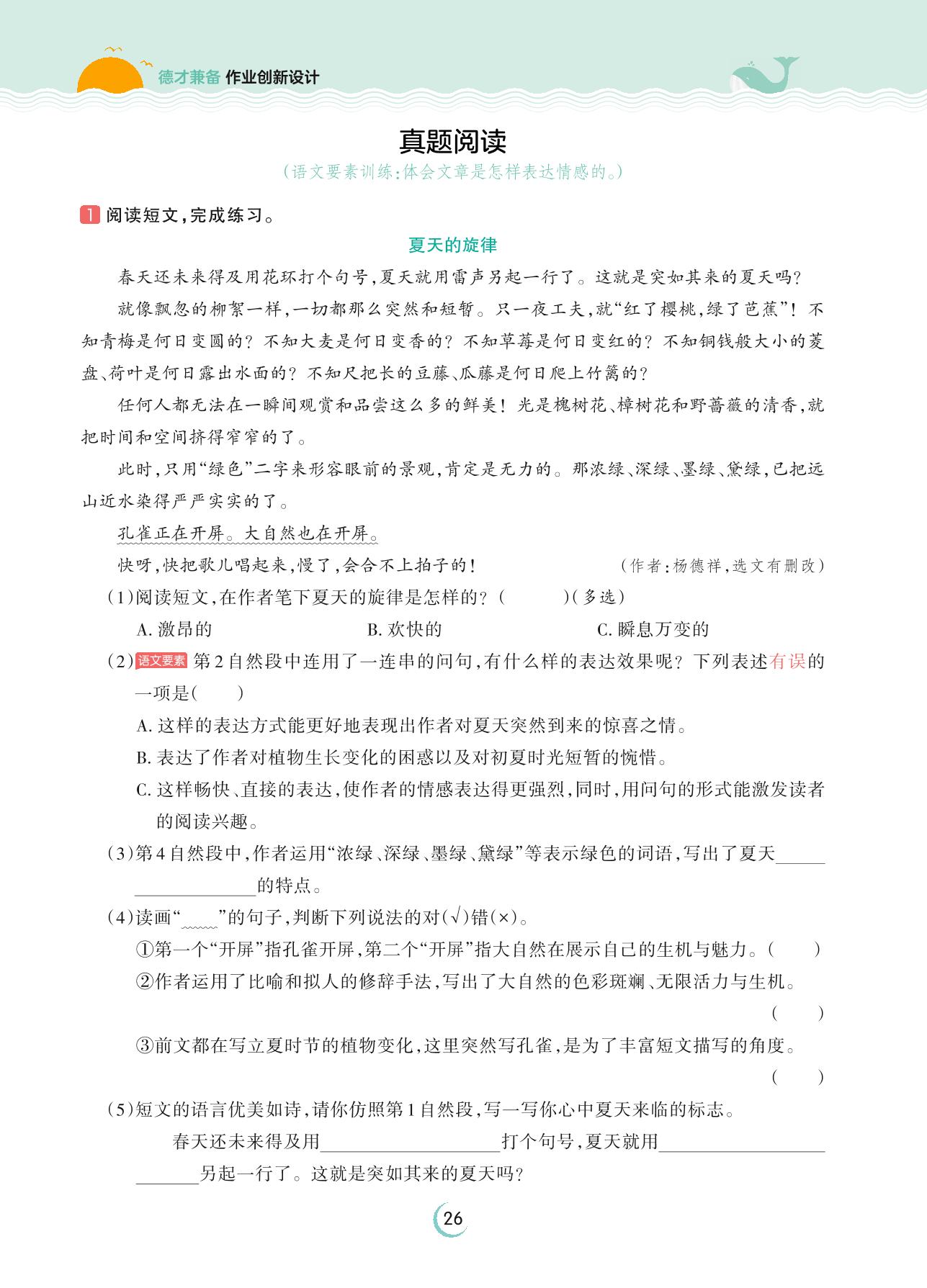 2023下册六年级语文人教版 第三单元 习作——真题阅读(语文要素训练)