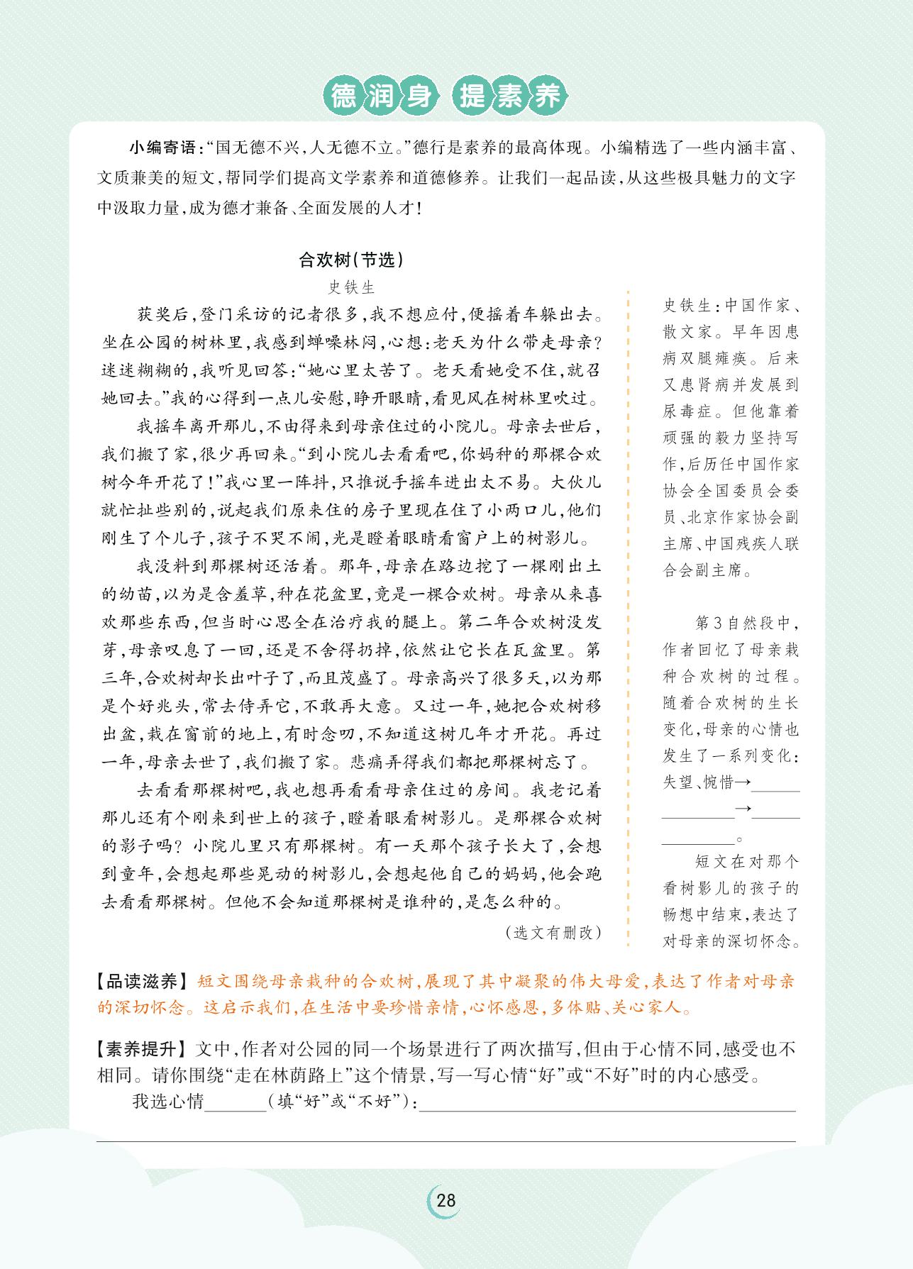 2023下册六年级语文人教版 第三单元 习作——德润身 提素养(学科素养落地)