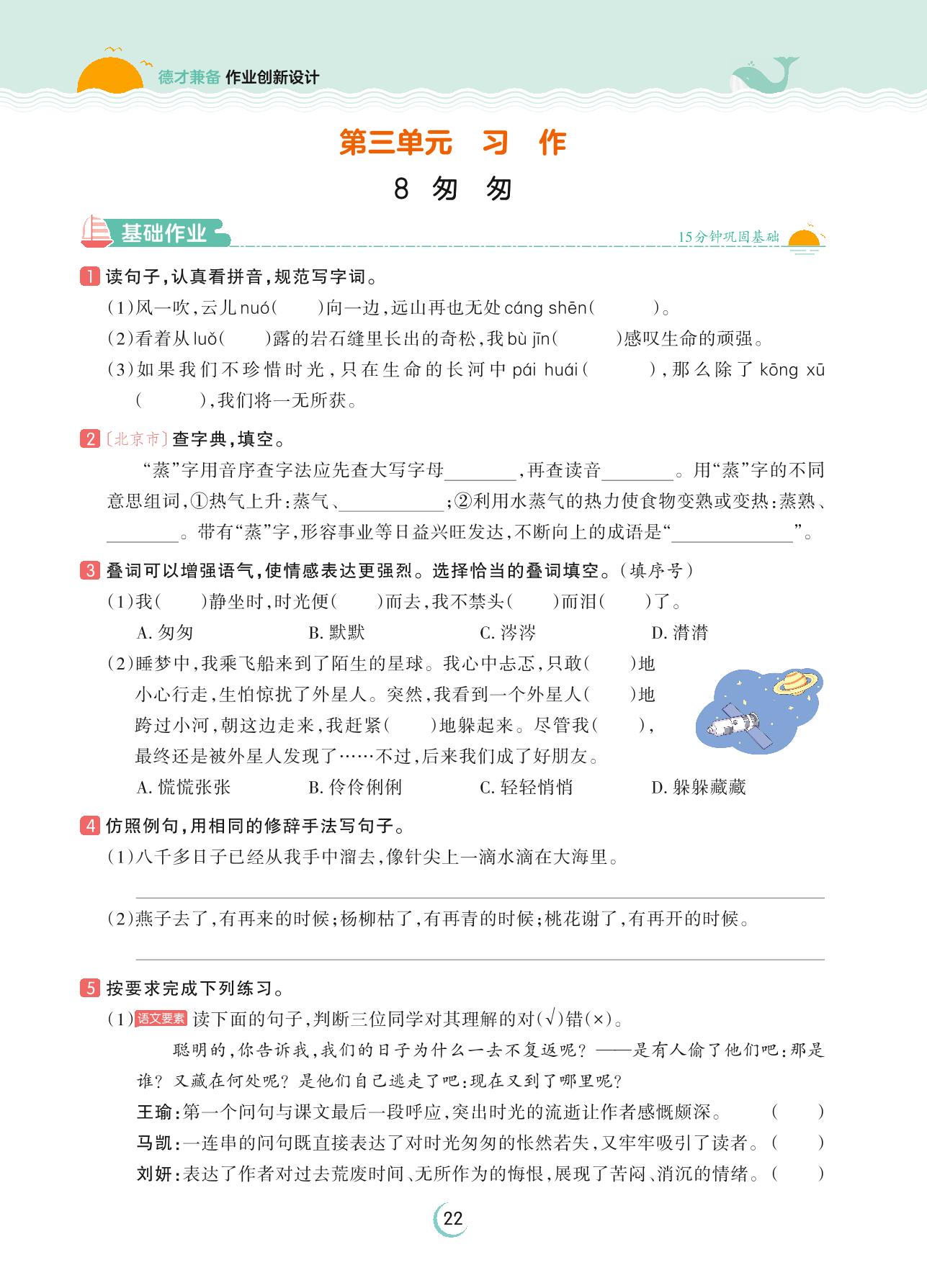 2023下册六年级语文人教版 第三单元 习作——8 匆匆