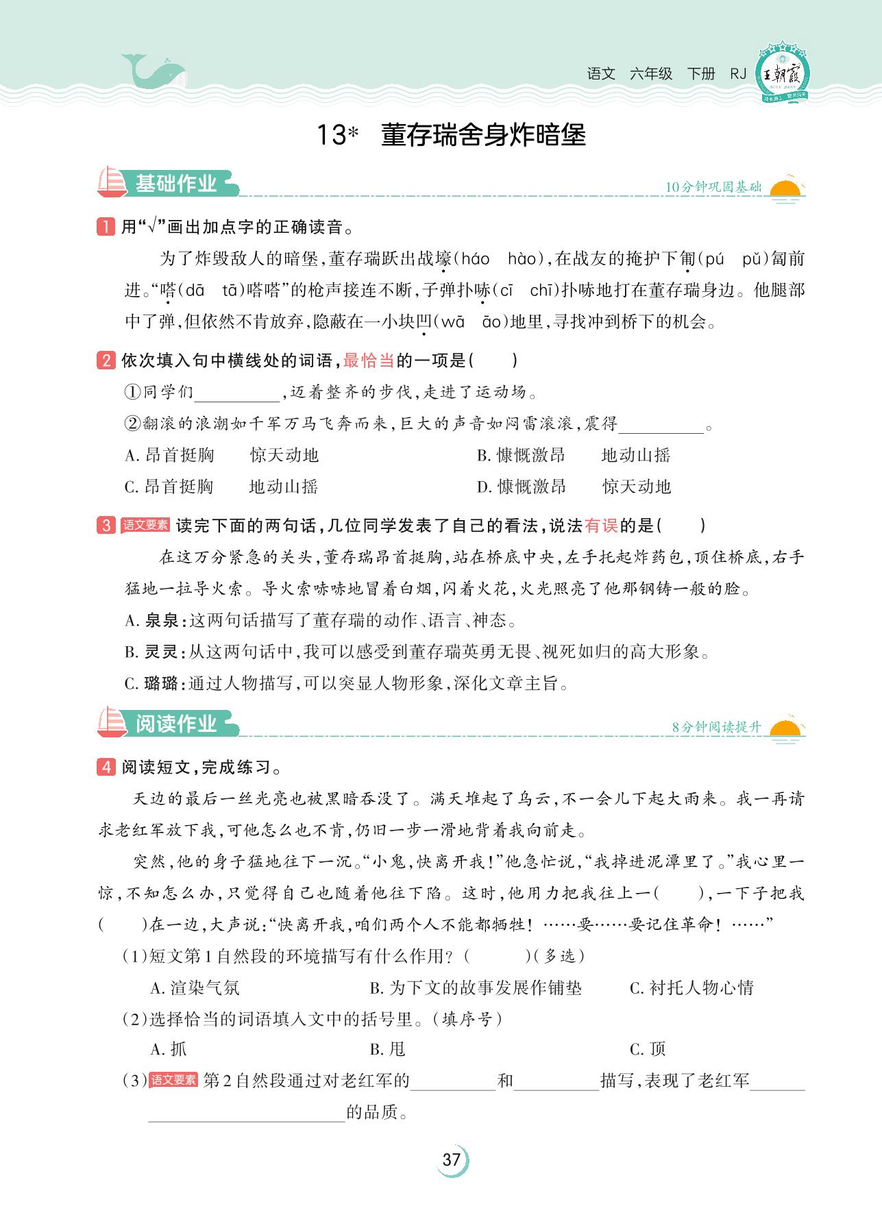 2023下册六年级语文人教版 第四单元 理想和信念——13 董存瑞舍身炸暗堡