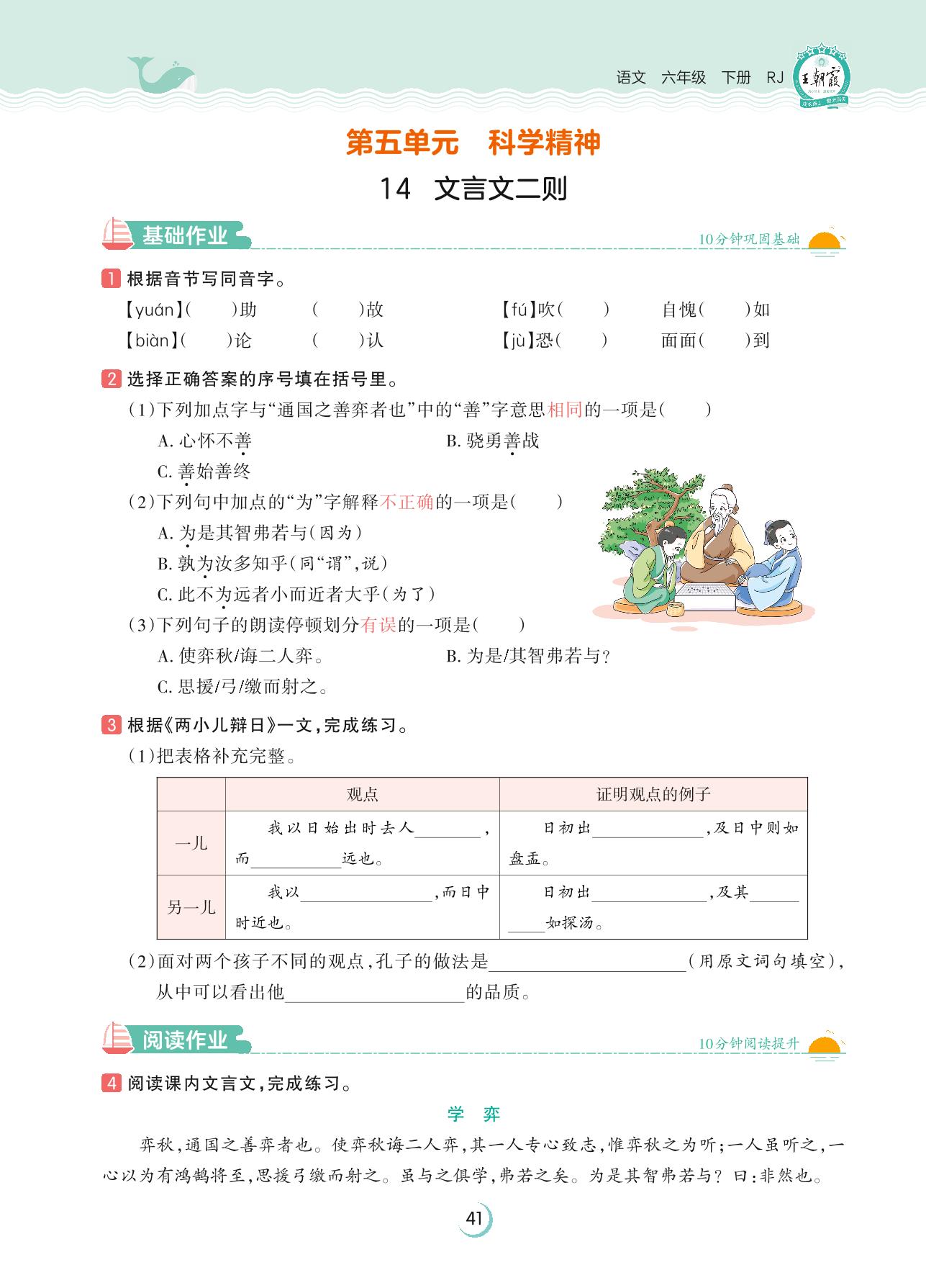 2023下册六年级语文人教版 第五单元 科学精神——14 文言文二则