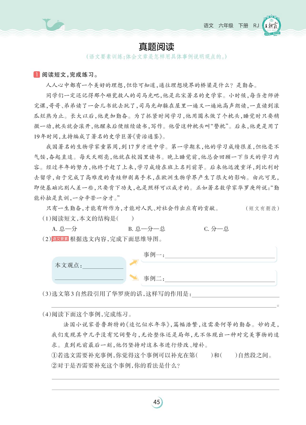 2023下册六年级语文人教版 第五单元 科学精神——真题阅读(语文要素训练)