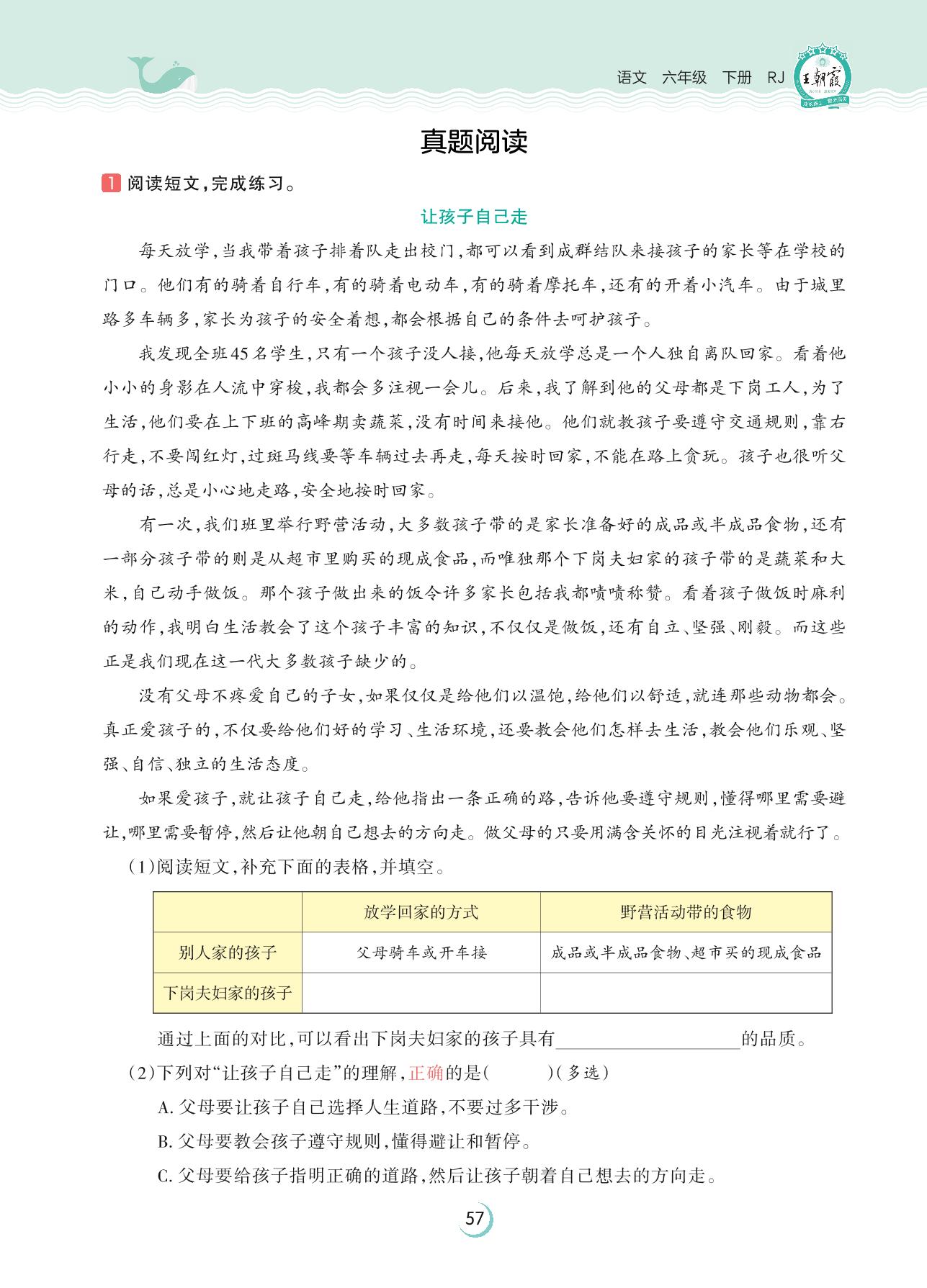 2023下册六年级语文人教版 第六单元 难忘小学生活——真题阅读