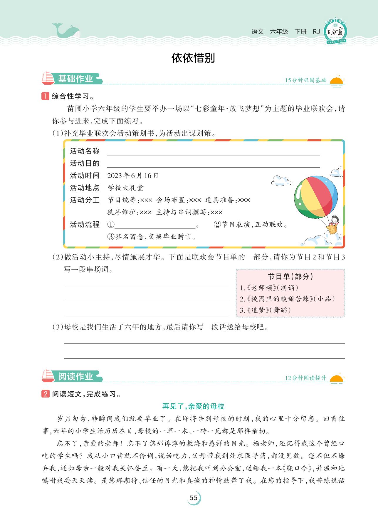 2023下册六年级语文人教版 第六单元 难忘小学生活——依依惜别