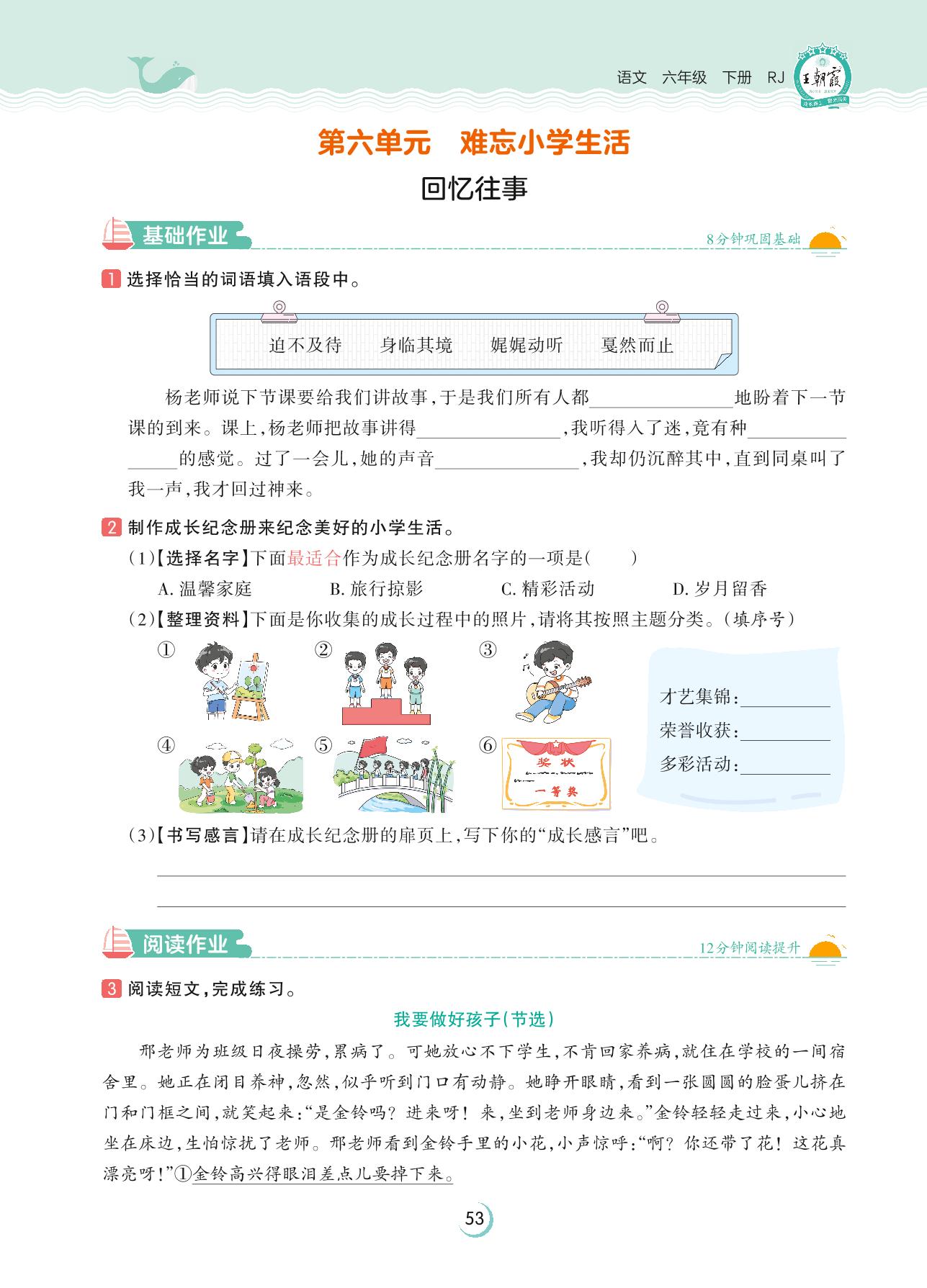 2023下册六年级语文人教版 第六单元 难忘小学生活——回忆往事