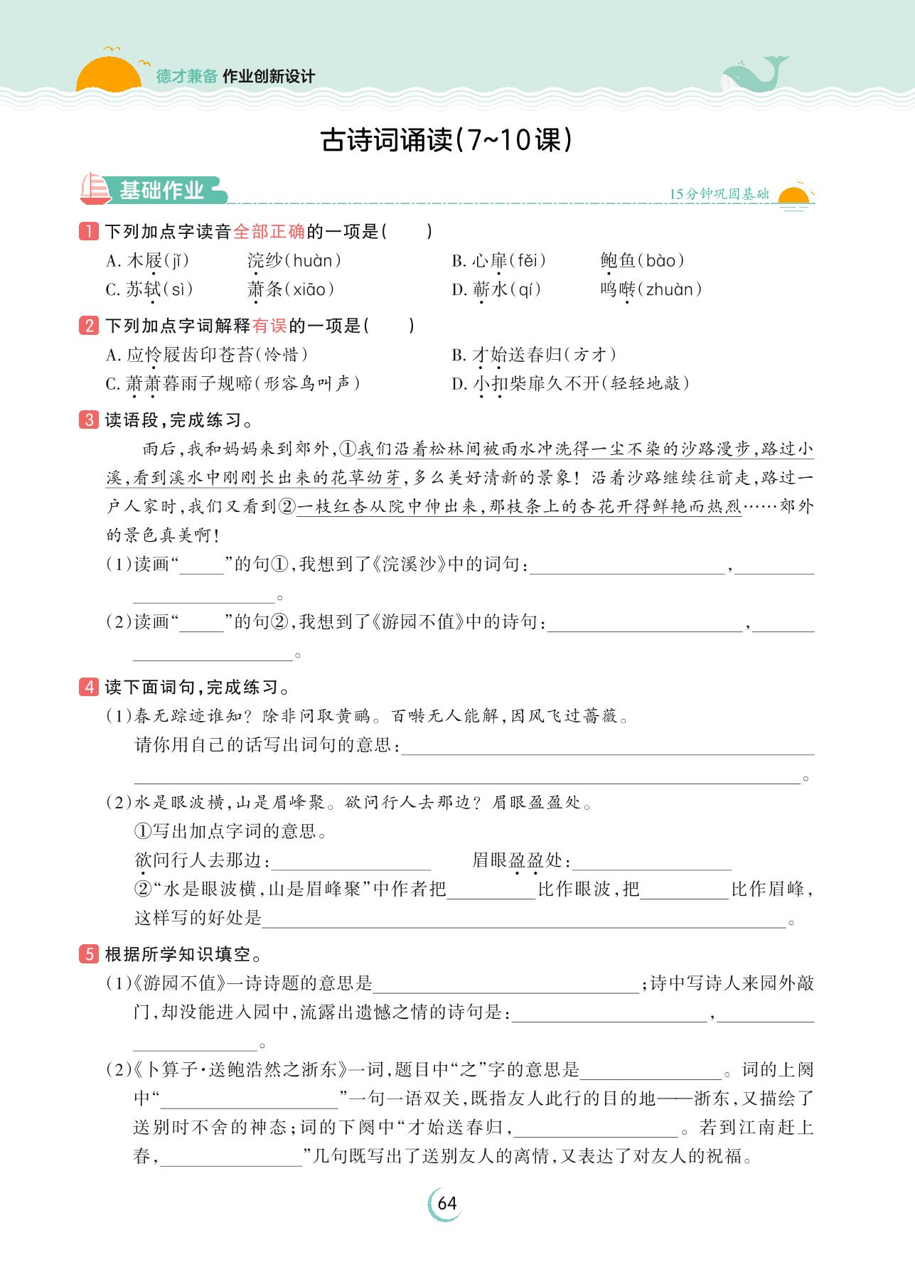 2023下册六年级语文人教版 古诗词诵读——古诗词诵读(7~10课)