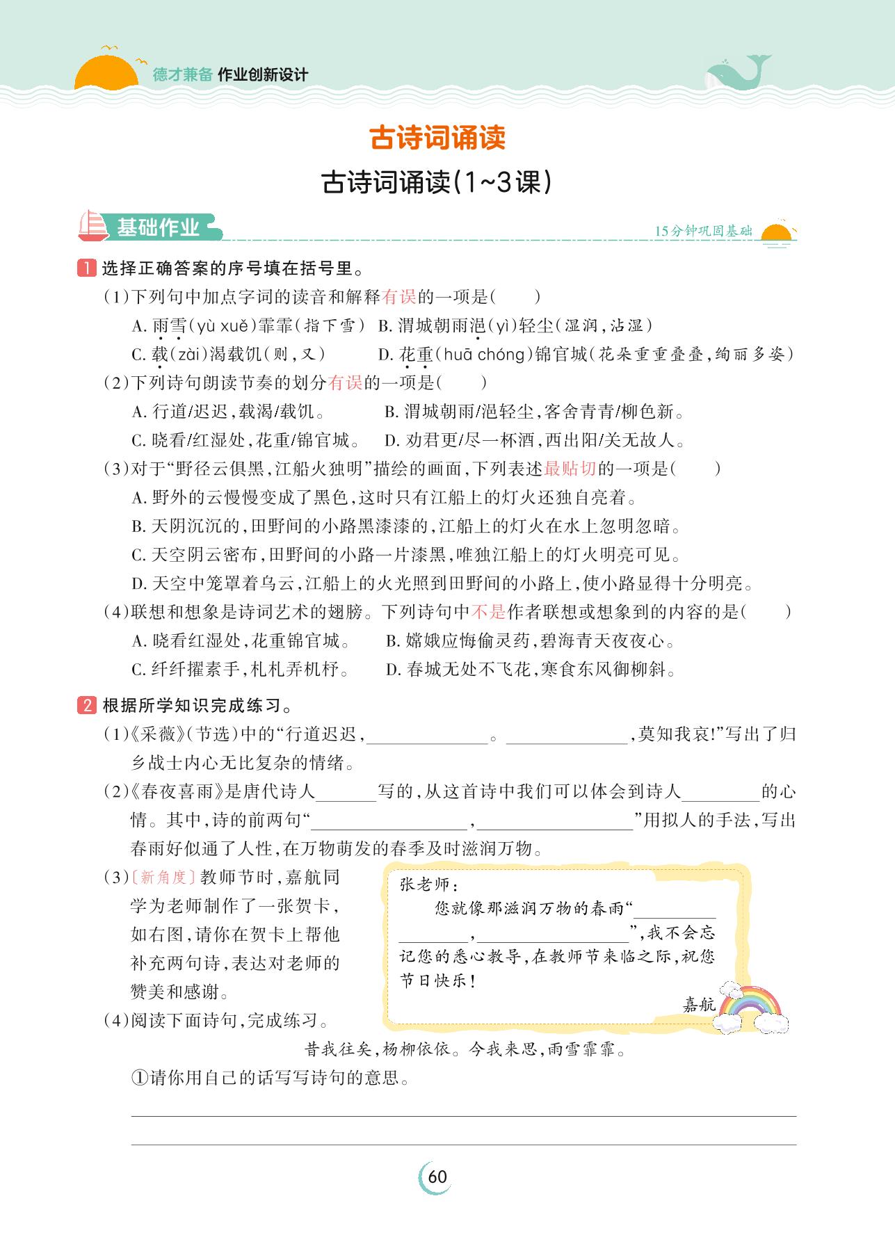 2023下册六年级语文人教版 古诗词诵读——古诗词诵读(1~3课)