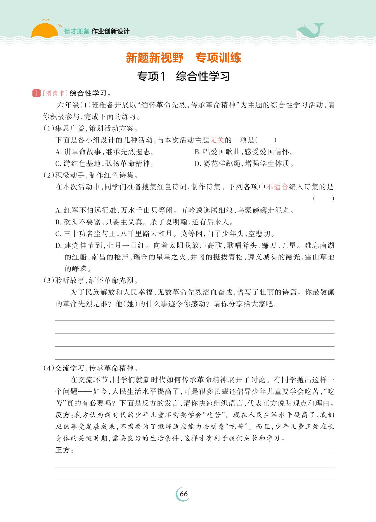 2023下册六年级语文人教版 新题新视野 专项训练——专项1 综合性学习