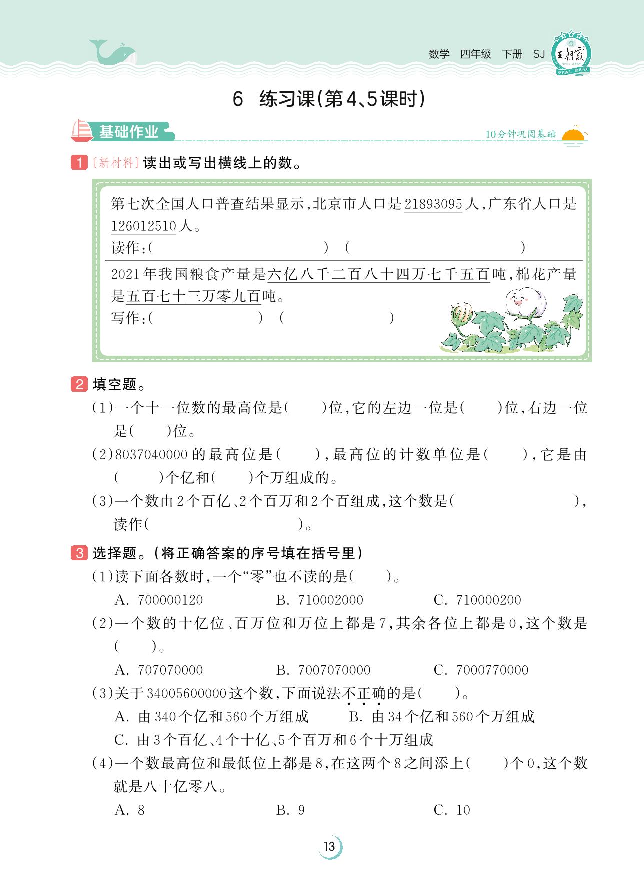 2023下册四年级数学苏教版 第二单元 认识多位数——6 练习课(第4、5课时)
