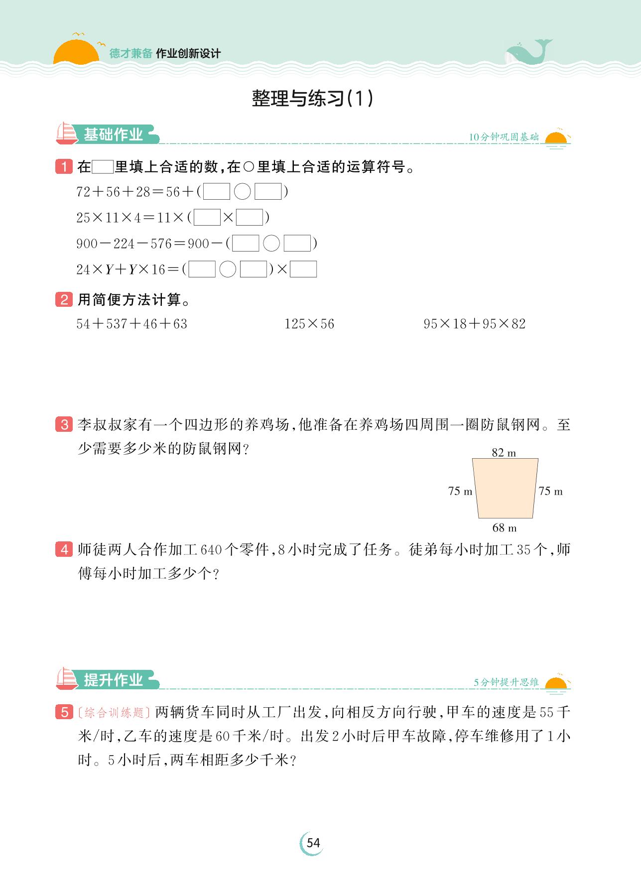 2023下册四年级数学苏教版 第六单元 运算律——整理与练习(1)