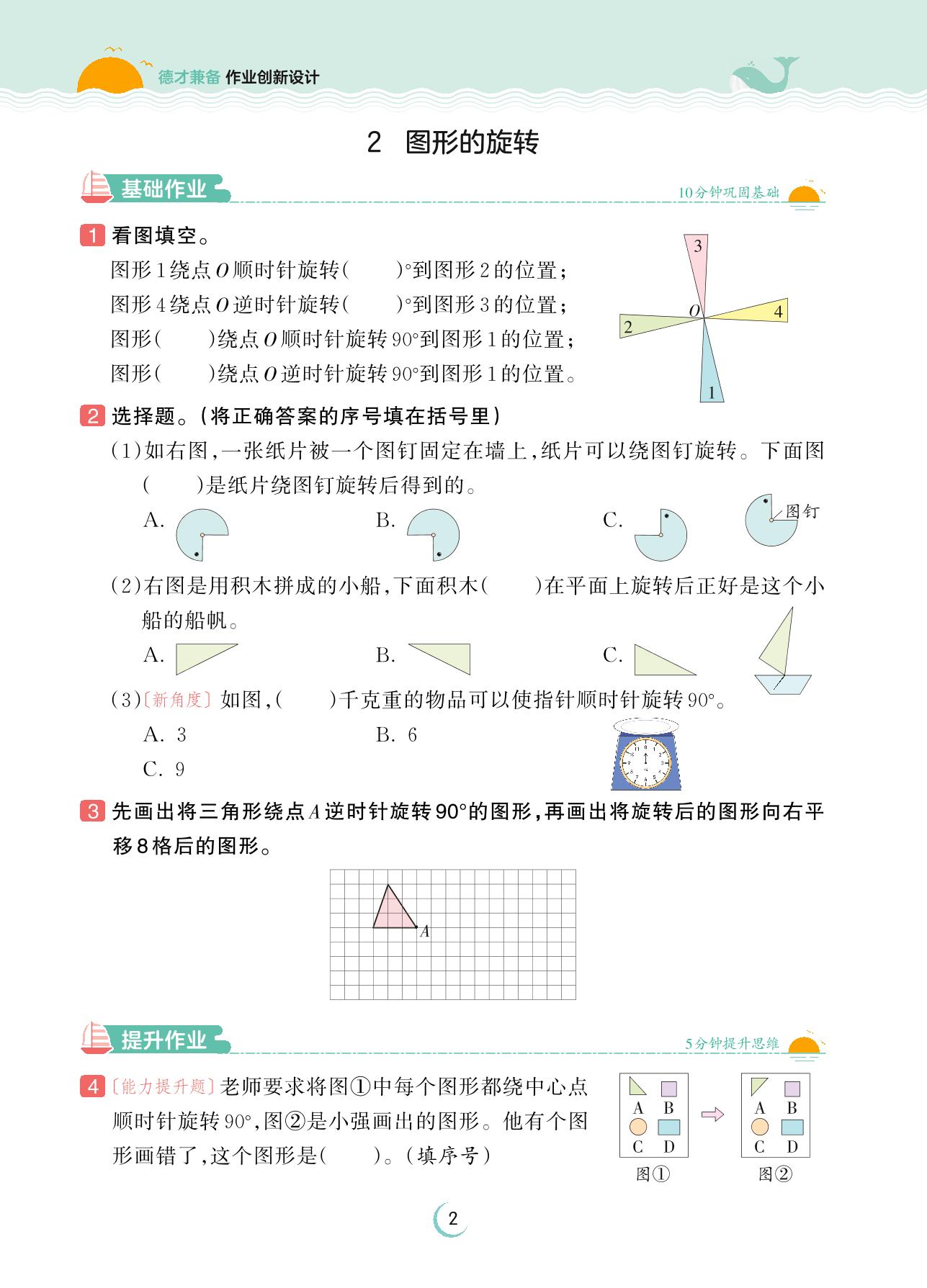 2023下册四年级数学苏教版 第一单元 平移、旋转和轴对称——2 图形的旋转
