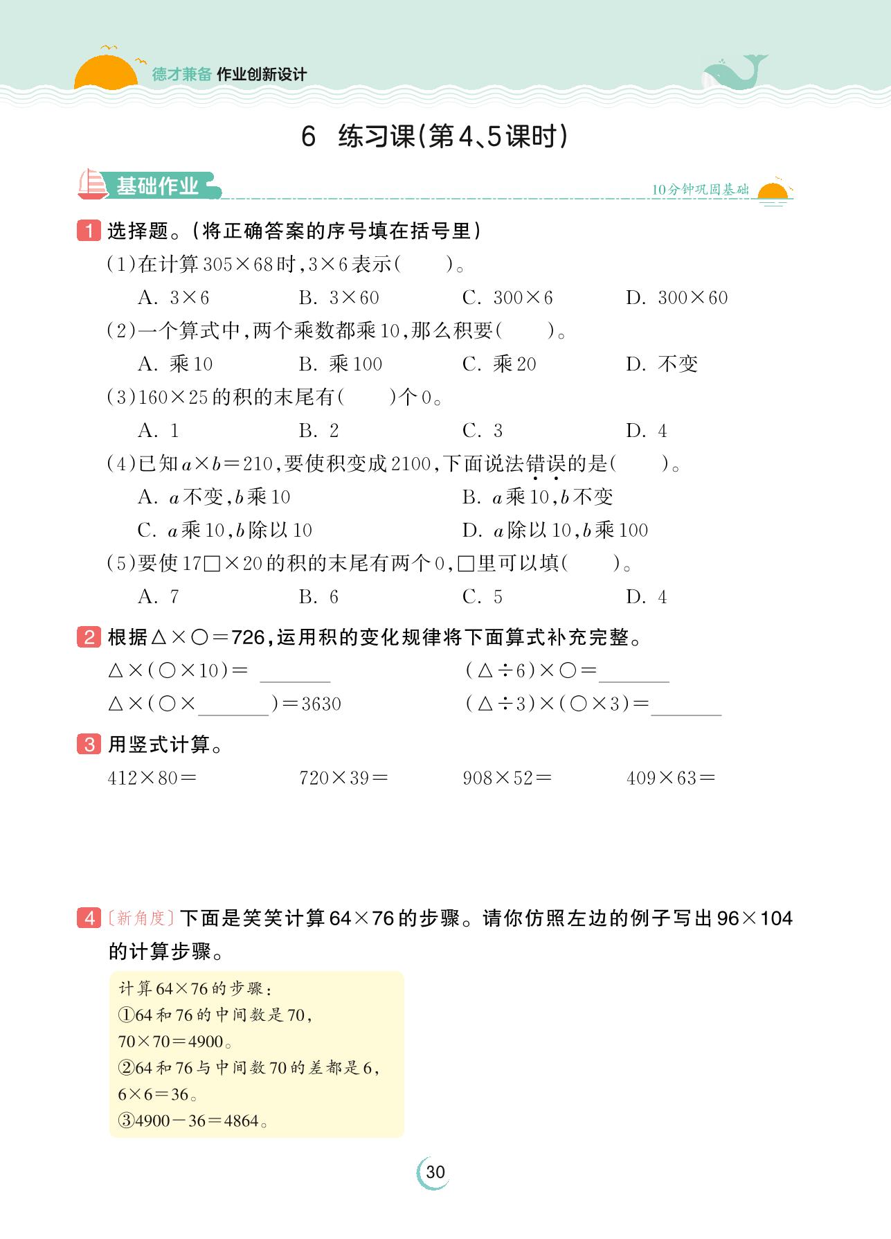2023下册四年级数学苏教版 第三单元 三位数乘两位数——6 练习课(第4、5课时)