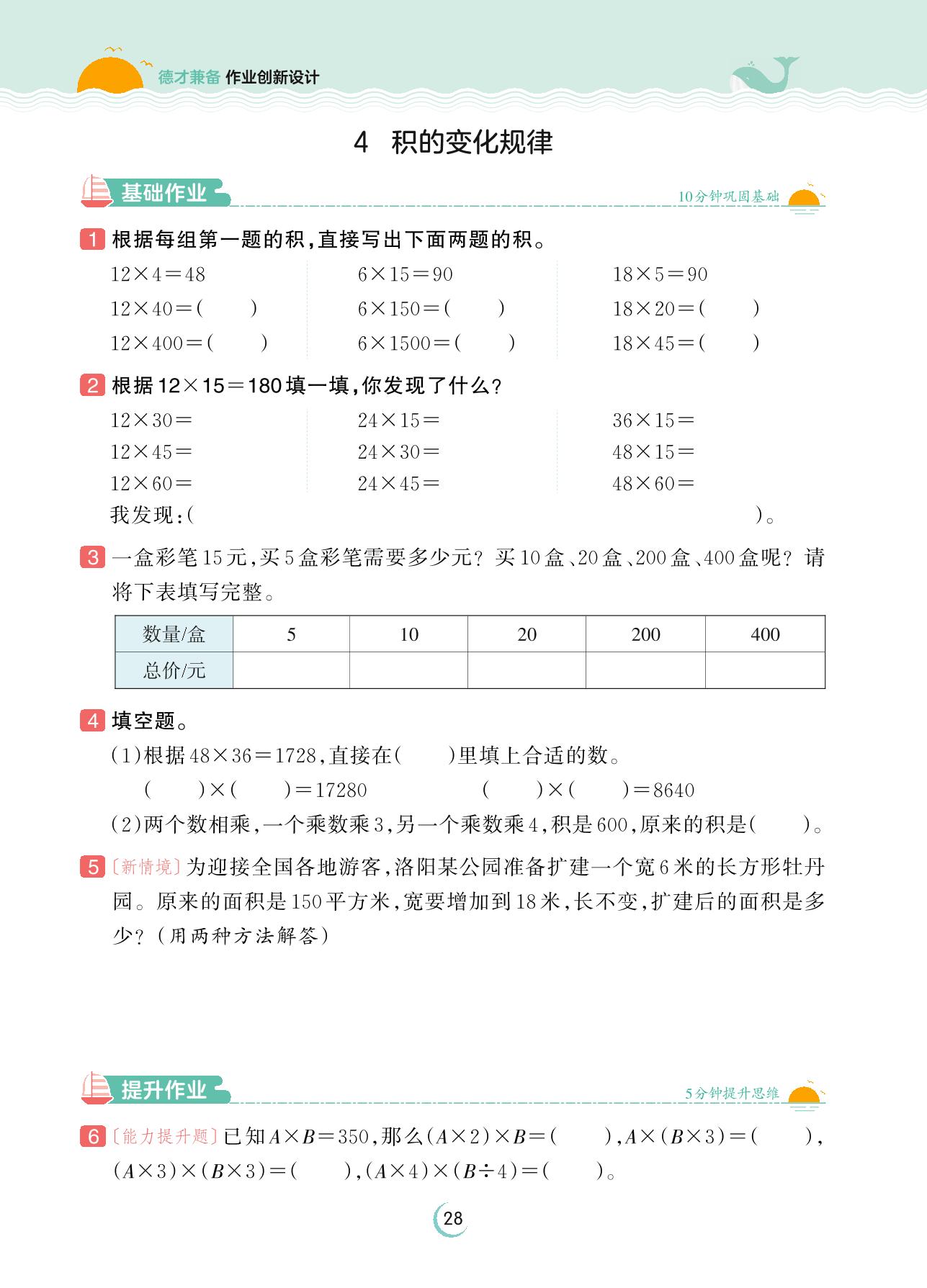 2023下册四年级数学苏教版 第三单元 三位数乘两位数——4 积的变化规律