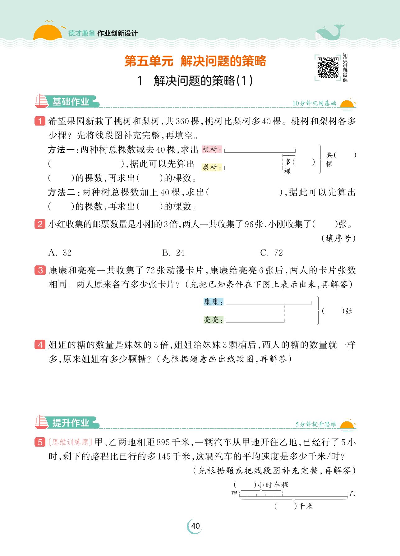 2023下册四年级数学苏教版 第五单元 解决问题的策略——1 解决问题的策略(1)