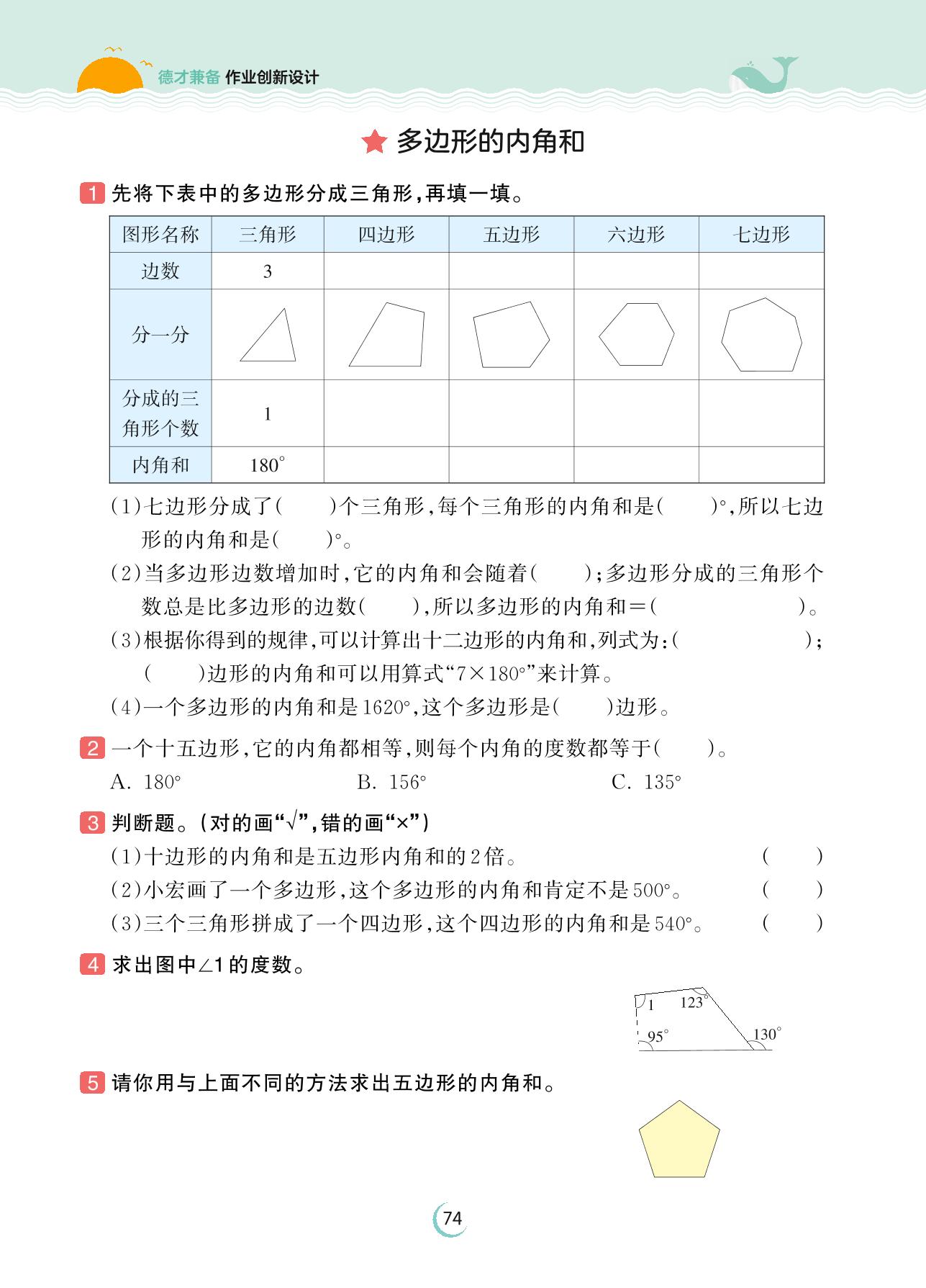 2023下册四年级数学苏教版 第七单元 三角形、平行四边形和梯形——多边形的内角和