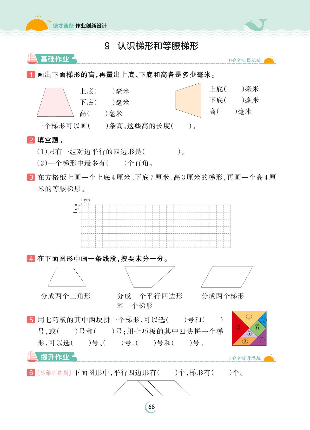 2023下册四年级数学苏教版 第七单元 三角形、平行四边形和梯形——9 认识梯形和等腰梯形