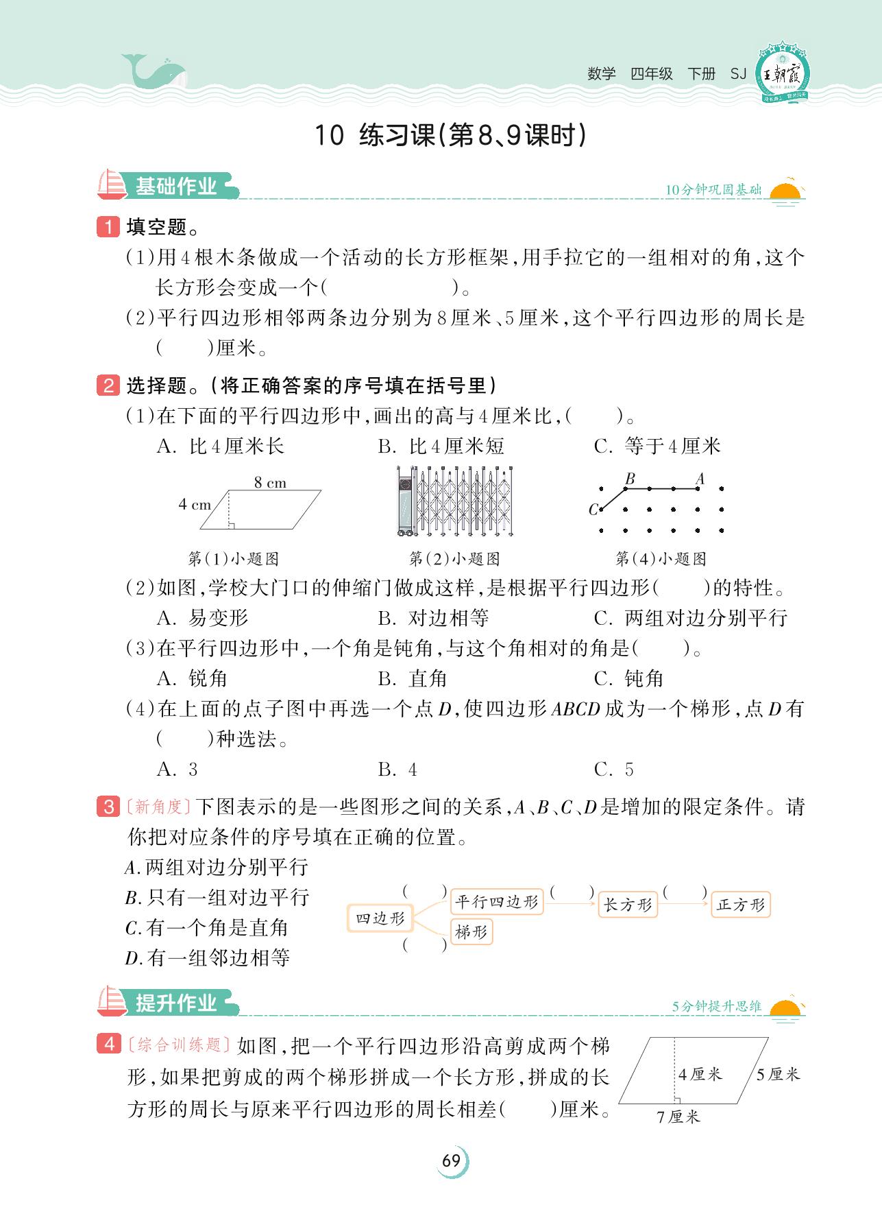 2023下册四年级数学苏教版 第七单元 三角形、平行四边形和梯形——10 练习课(第8、9课时)