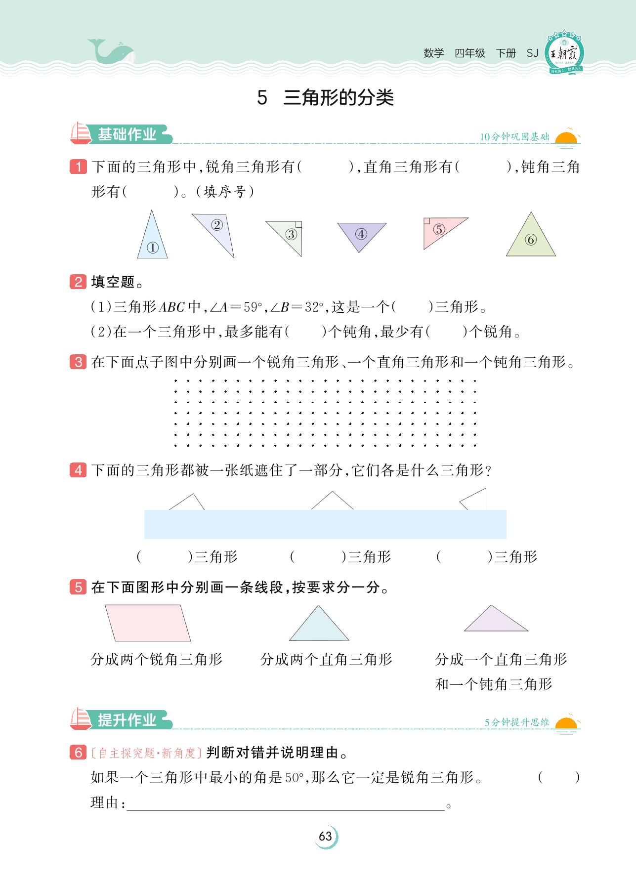 2023下册四年级数学苏教版 第七单元 三角形、平行四边形和梯形——5 三角形的分类