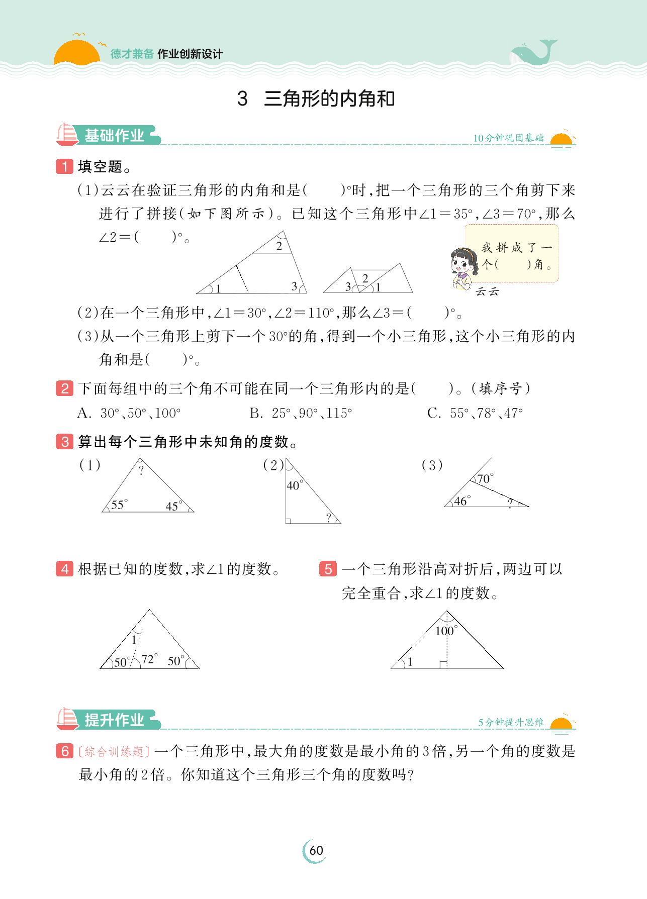 2023下册四年级数学苏教版 第七单元 三角形、平行四边形和梯形——3 三角形的内角和
