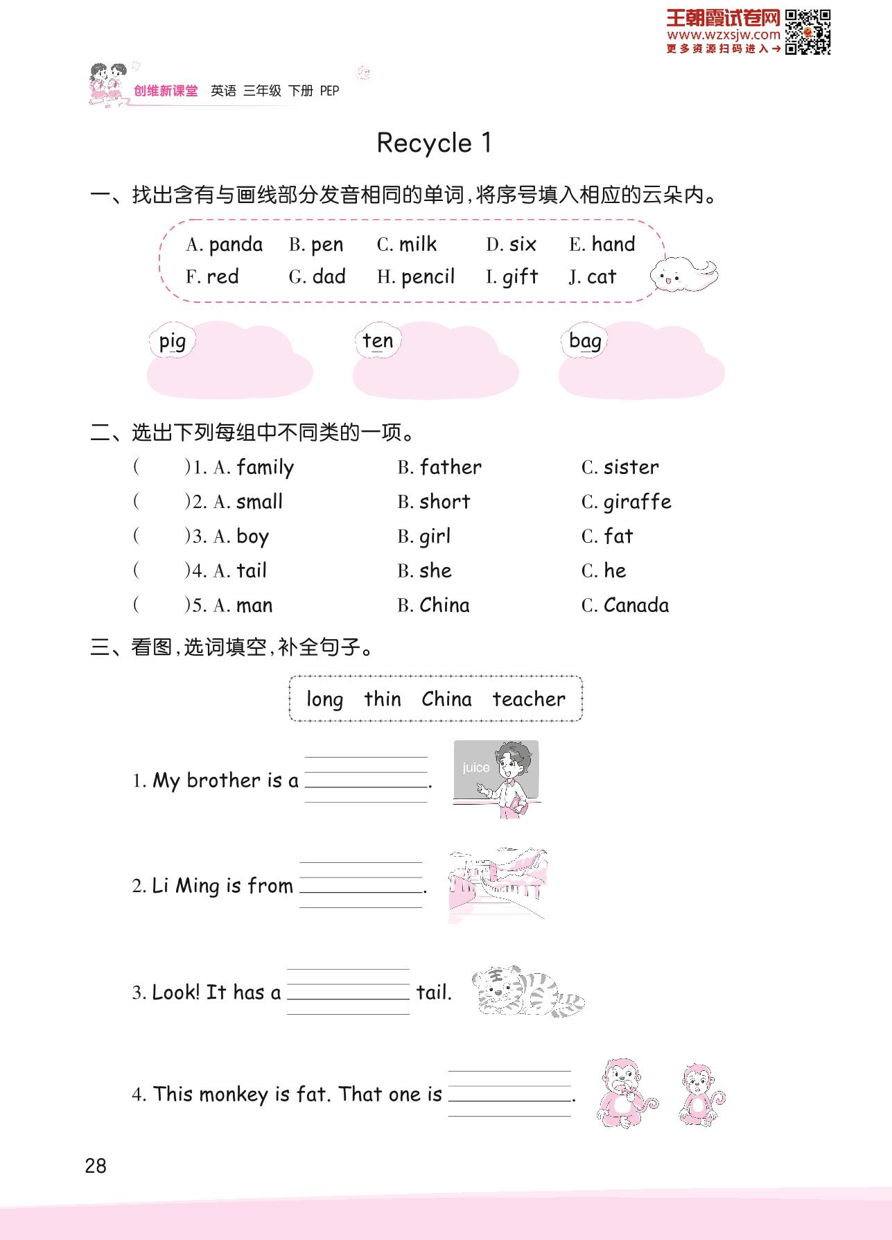 2023下册三年级英语人教PEP版 Recycle 1 _R230206145639152