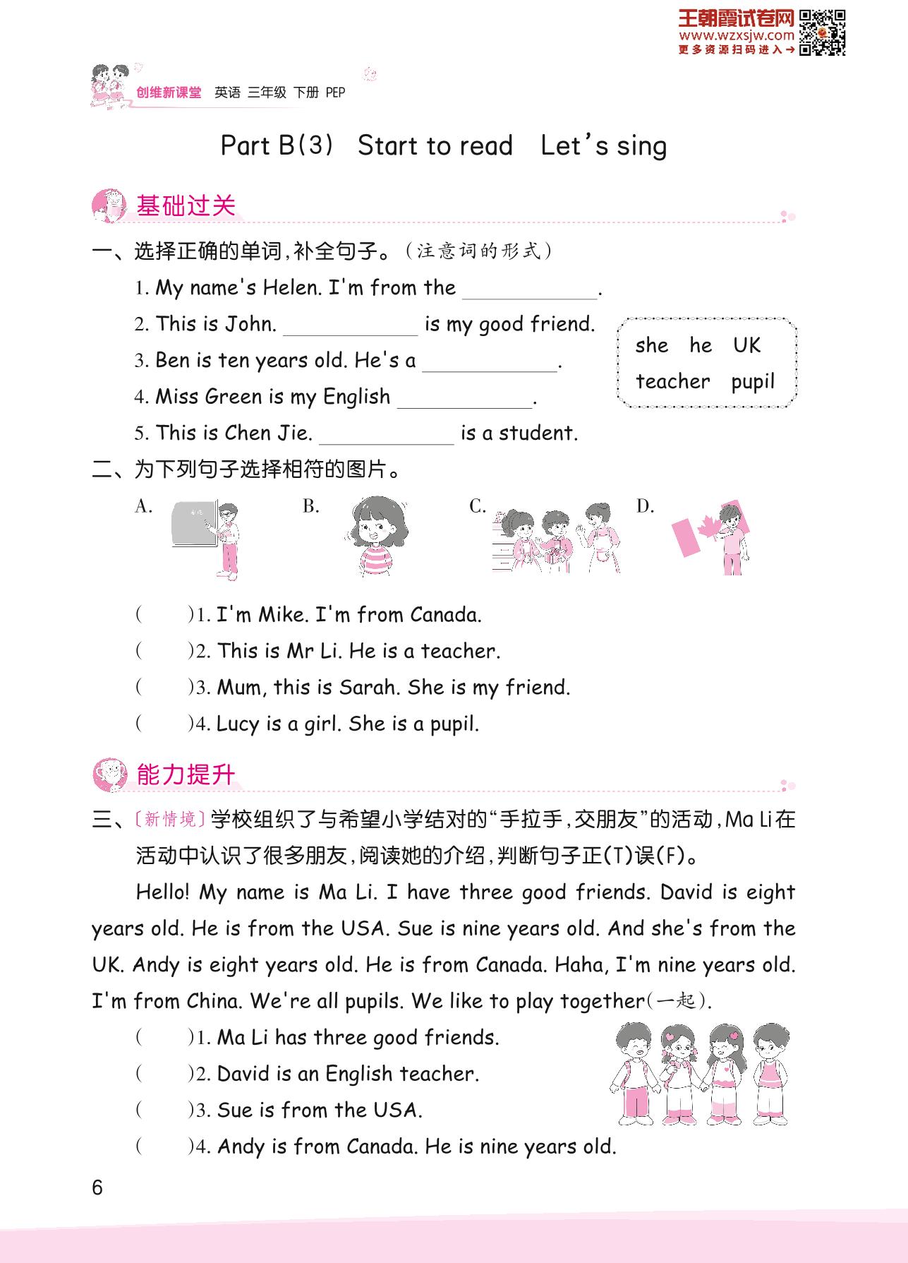 2023下册三年级英语人教PEP版 Unit 1 Part B(3)—Start to read Let’s sing