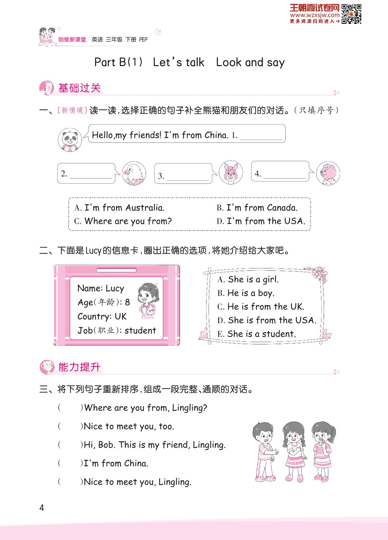 2023下册三年级英语人教PEP版 Unit 1 Part B(1)—Let’s talk Look and say