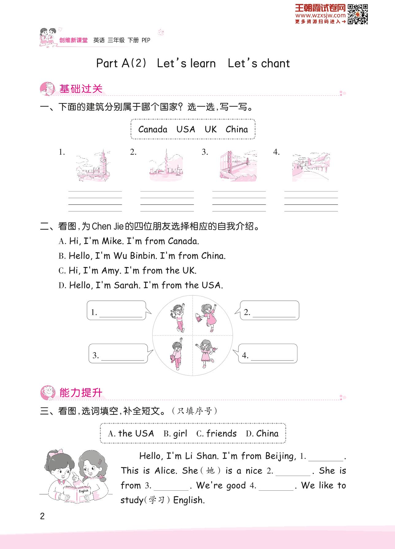 2023下册三年级英语人教PEP版 Unit 1 Part A(2)—Let’s learn Let’s chant