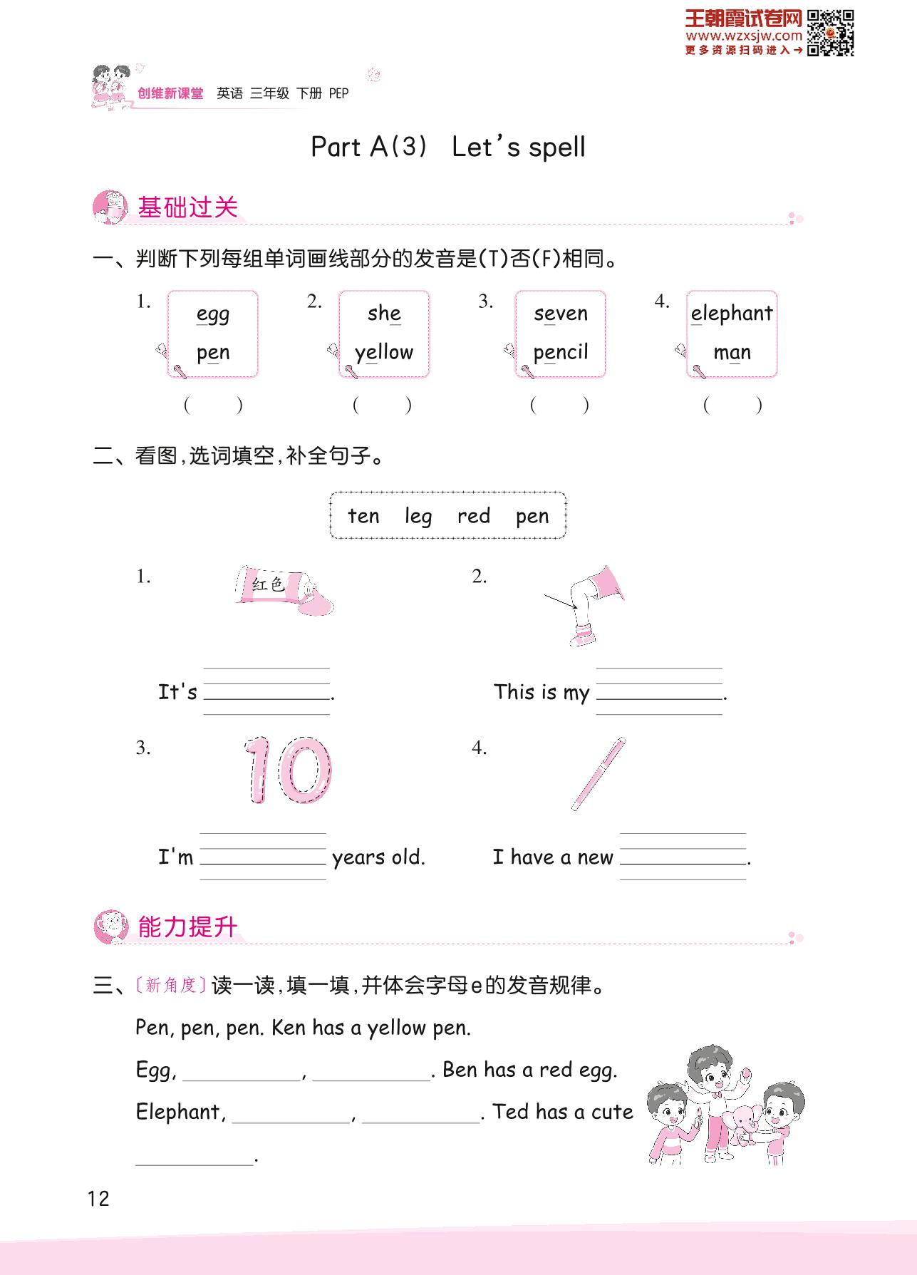 2023下册三年级英语人教PEP版 Unit 2 Part A(3)—Let’s spell