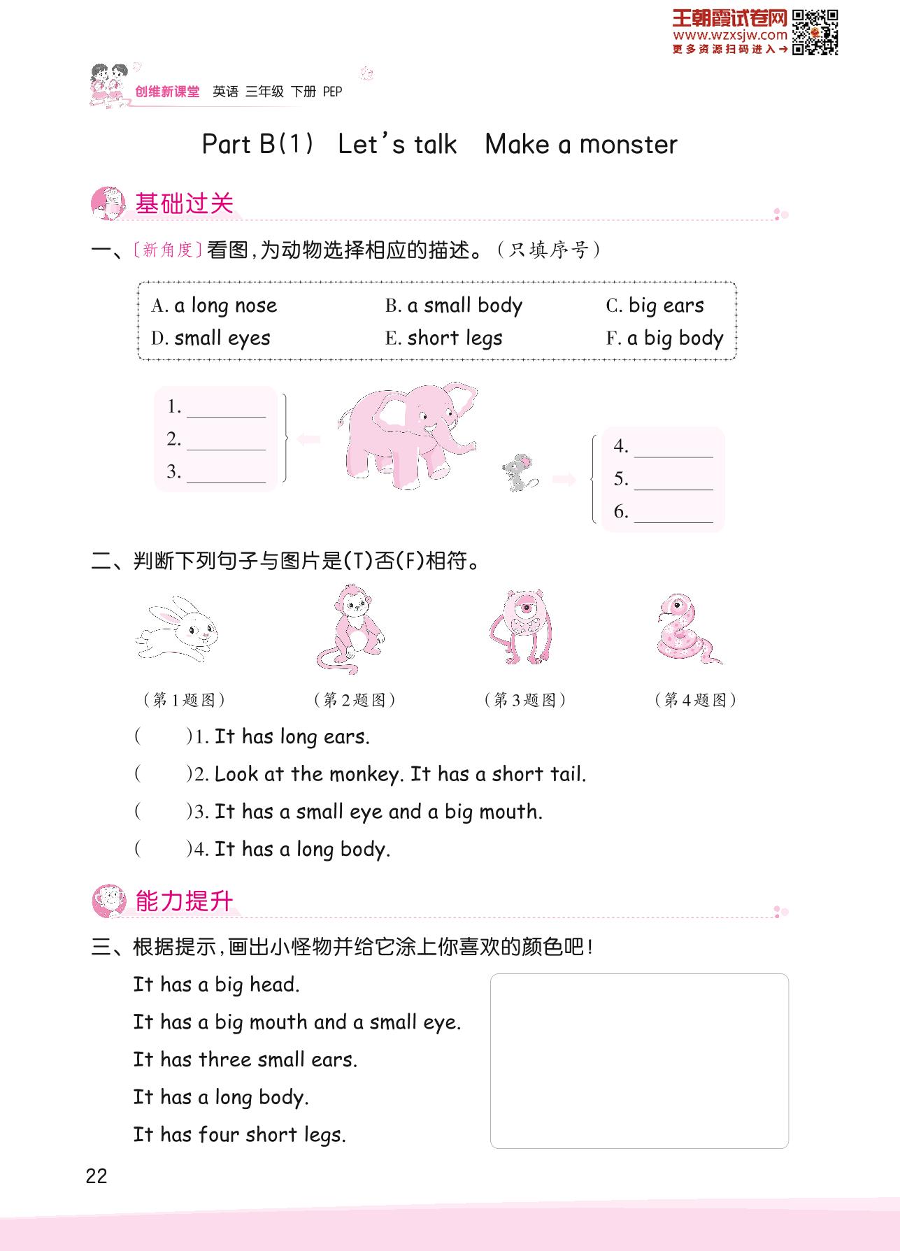 2023下册三年级英语人教PEP版 Unit 3 Part B(1)—Let’s talk Make a monster