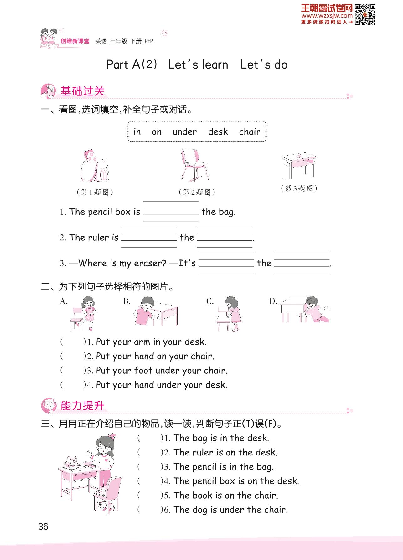 2023下册三年级英语人教PEP版 Unit 4 Part A(2)—Let’s learn Let’s do