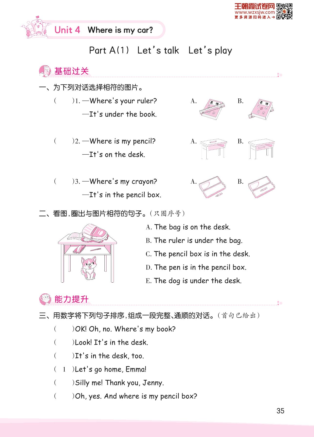 2023下册三年级英语人教PEP版 Unit 4 Part A(1)—Let’s talk Let’s play