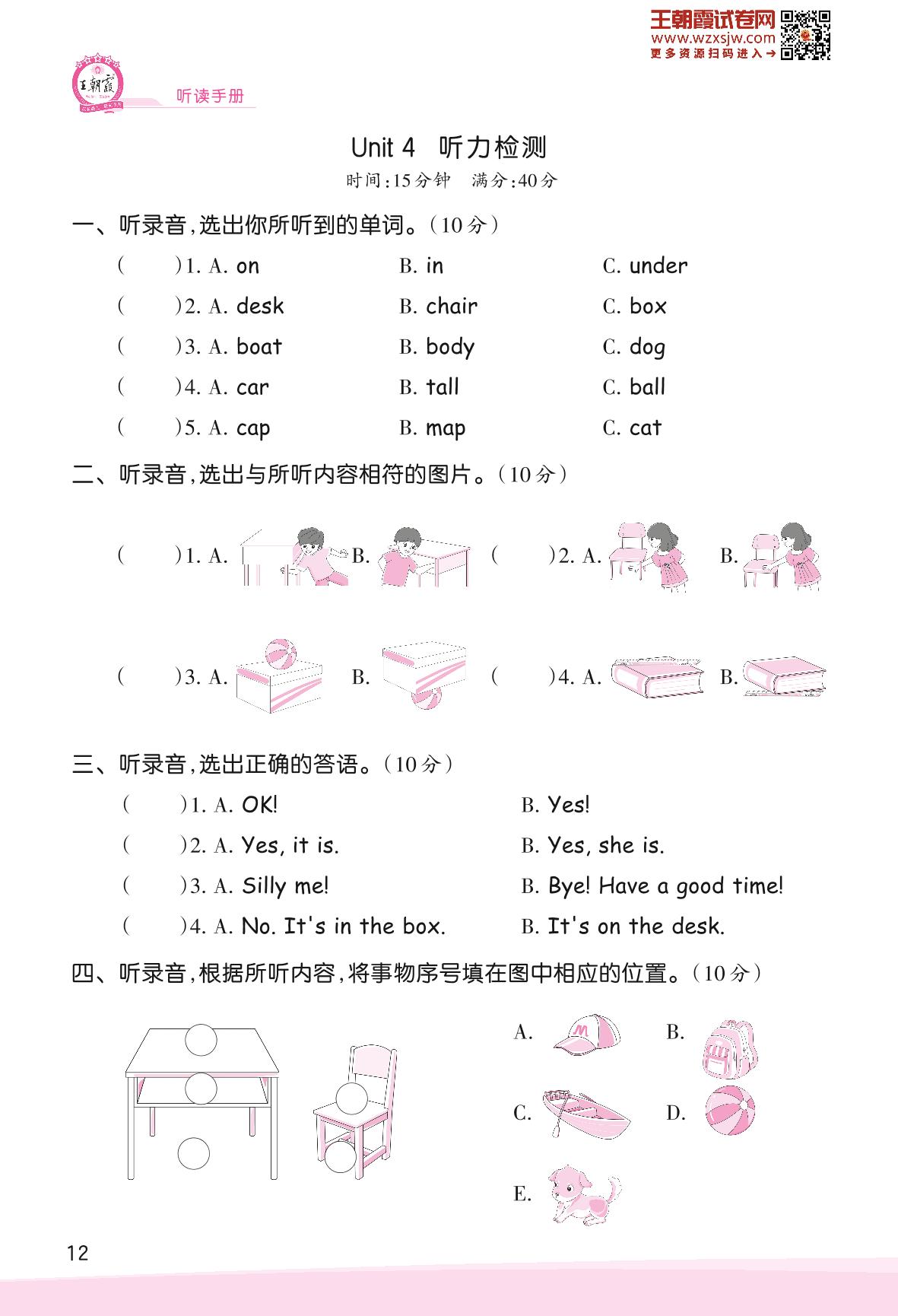 2023下册三年级英语人教PEP版 Unit 4 Where is my car?—听力检测