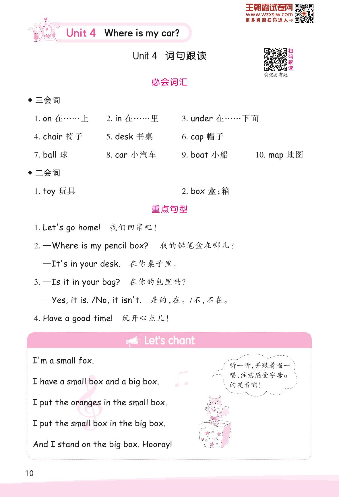 2023下册三年级英语人教PEP版 Unit 4 Where is my car?—词句跟读