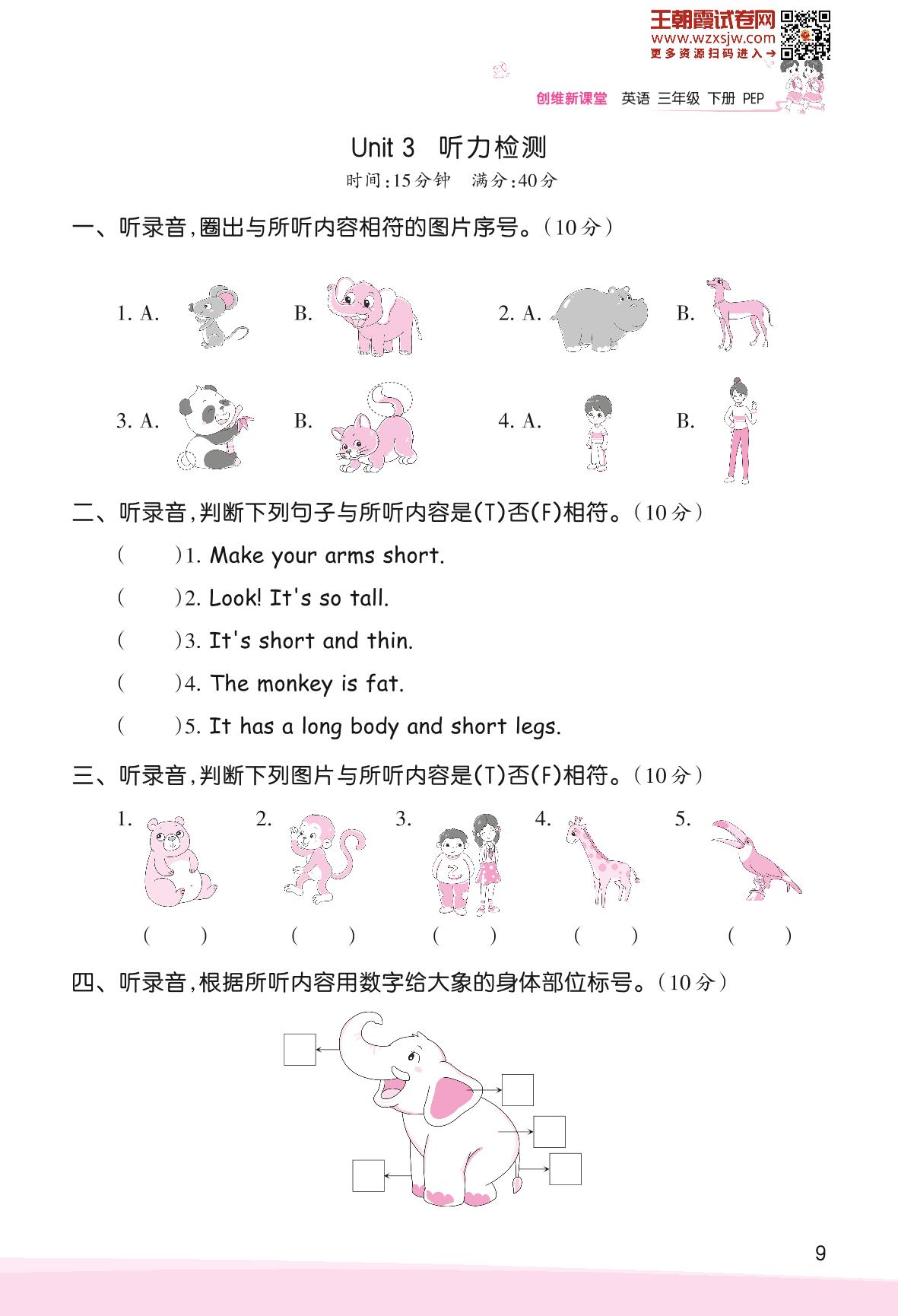 2023下册三年级英语人教PEP版 Unit 3 At the zoo—听力检测