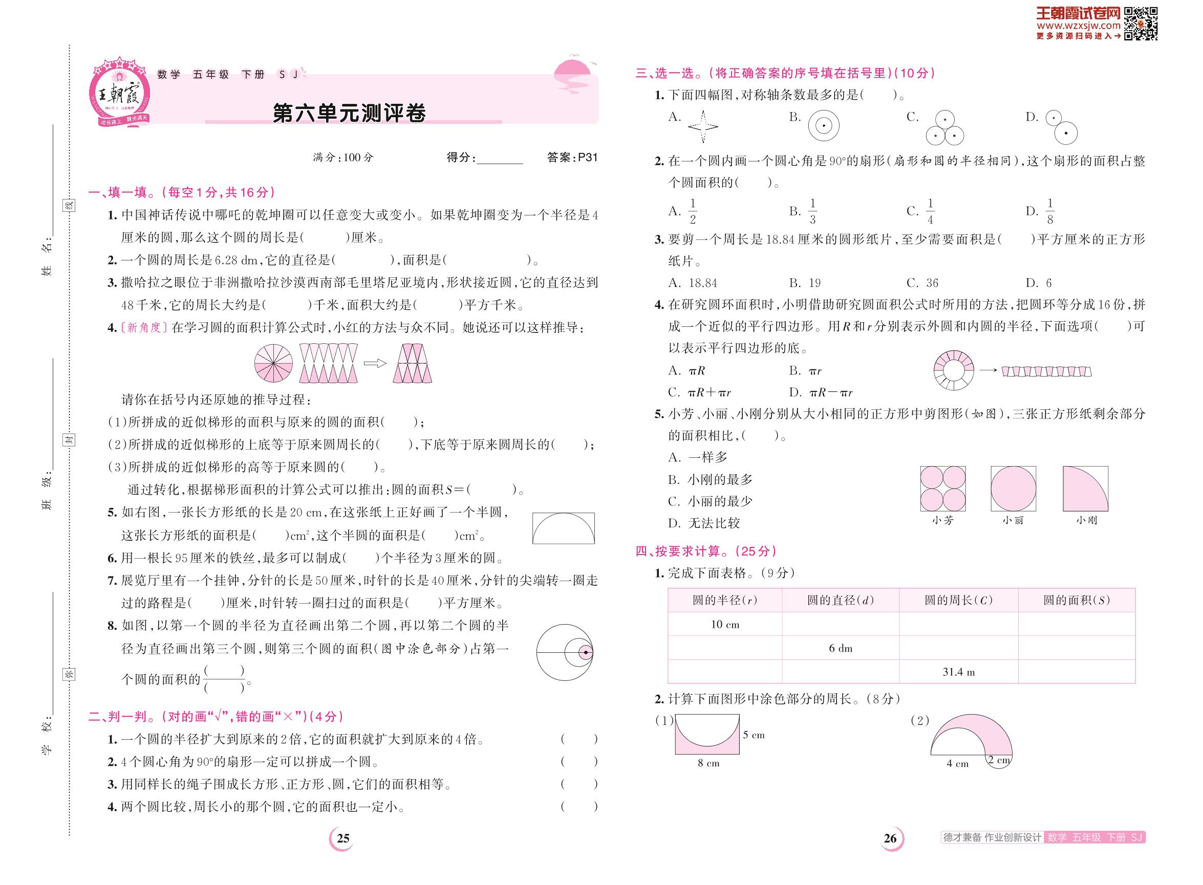 2023下册五年级数学苏教版 第六单元测评卷