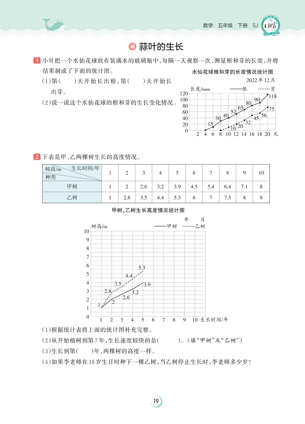 2023下册五年级数学苏教版 第二单元 折线统计图——蒜叶的生长