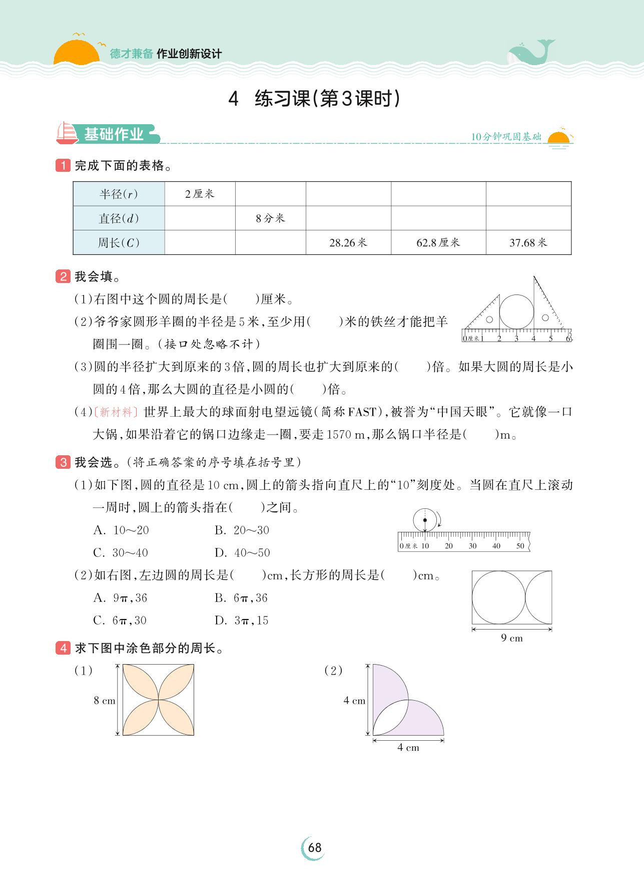2023下册五年级数学苏教版 第六单元 圆——4 练习课(第3课时)