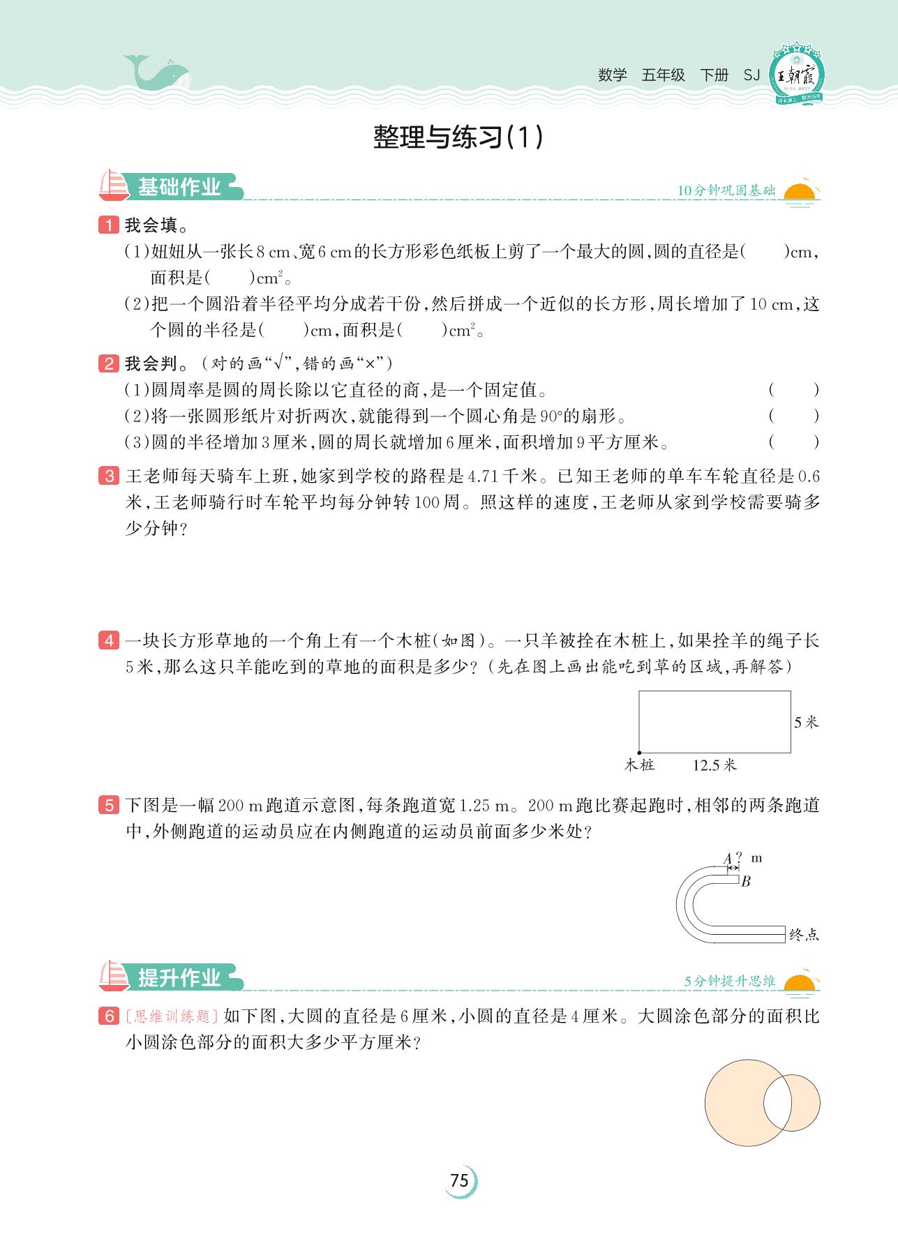 2023下册五年级数学苏教版 第六单元 圆——整理与练习(1)