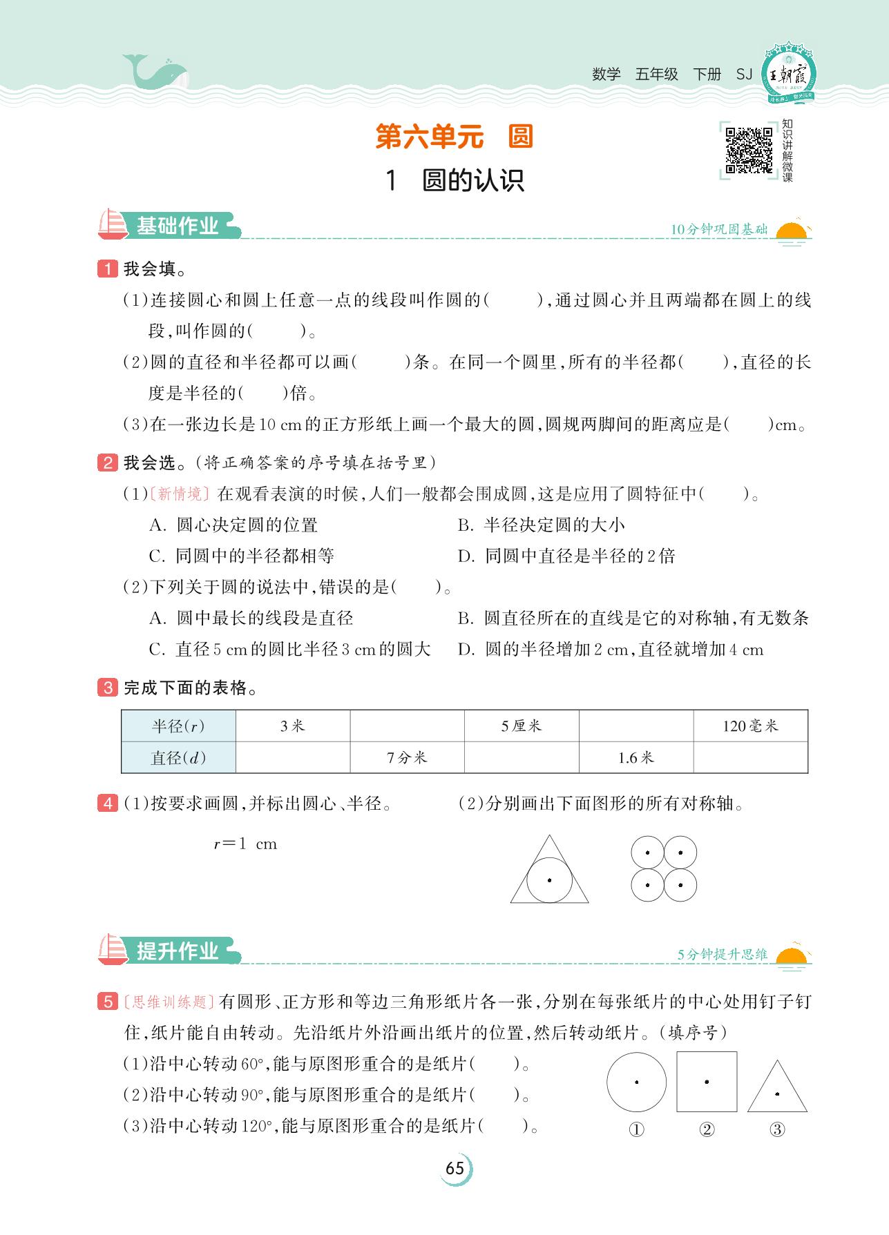 2023下册五年级数学苏教版 第六单元 圆——1 圆的认识